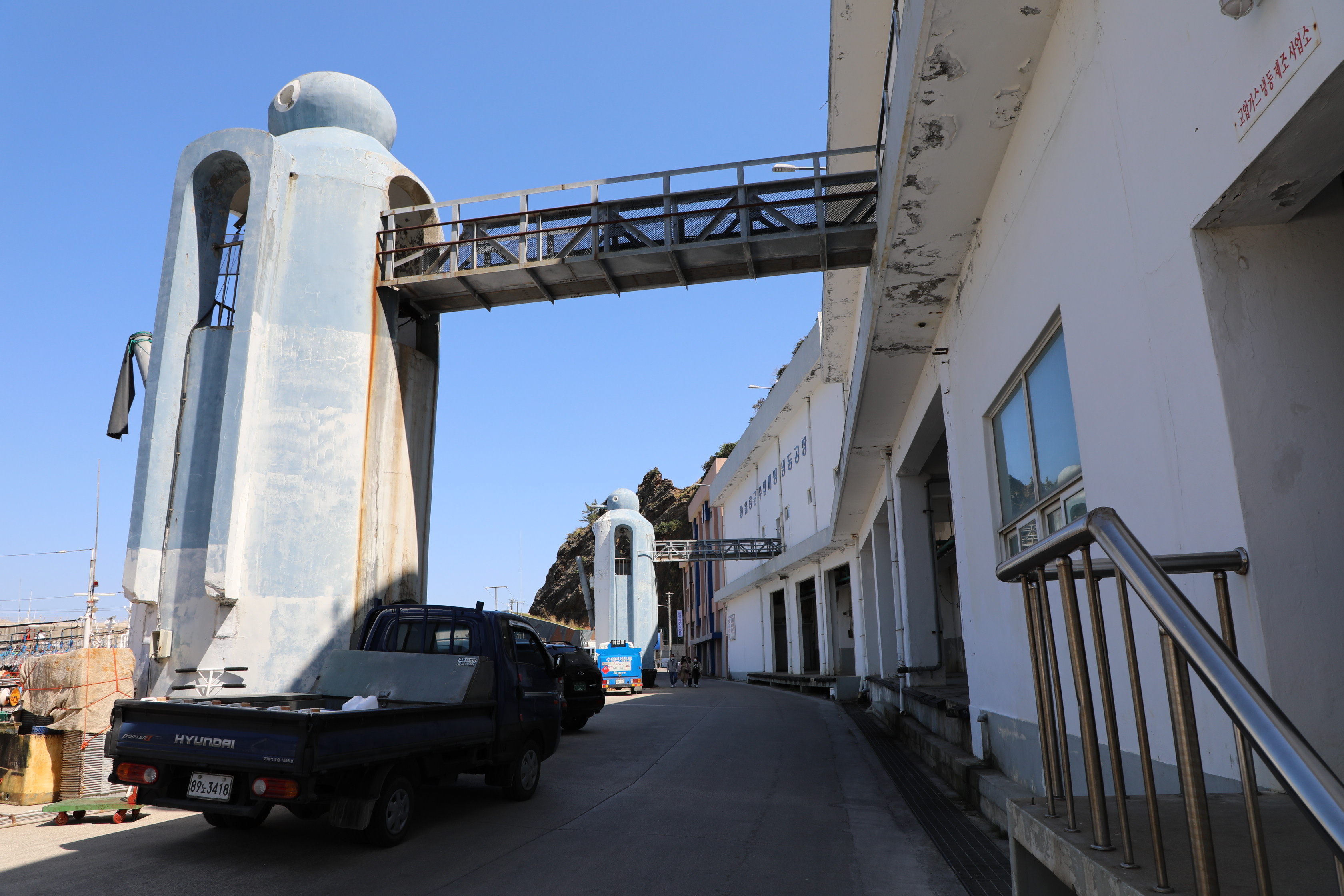 수산물 가공공장으로 연결된 이 구조물의 용도가 궁금하다.