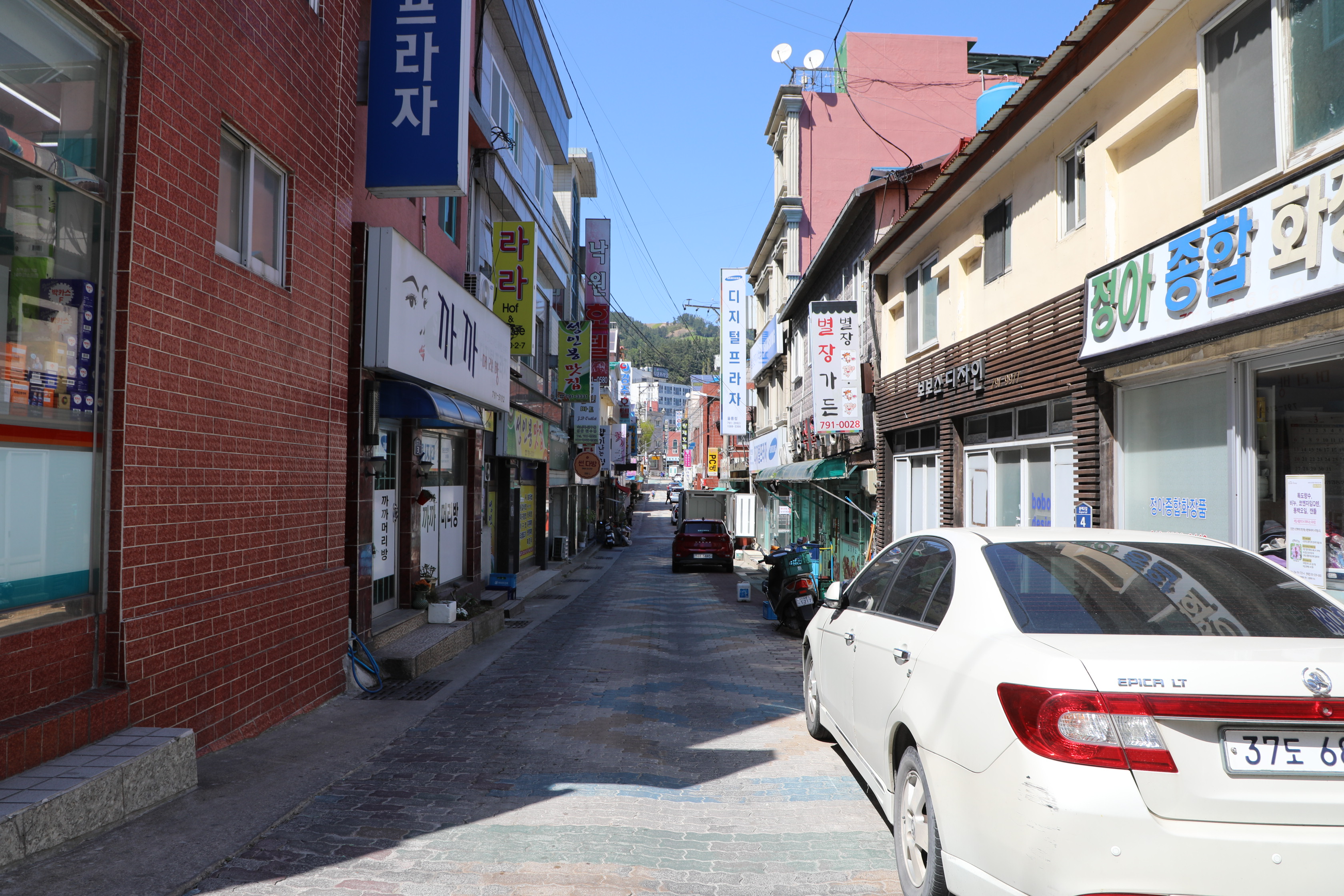 울릉군청 등 행정관서가 있는 도동항이 자연부락을 따라 다소 난립한 형태라면 저동항의 상가는 다소 일사불란한 느낌을 준다.
