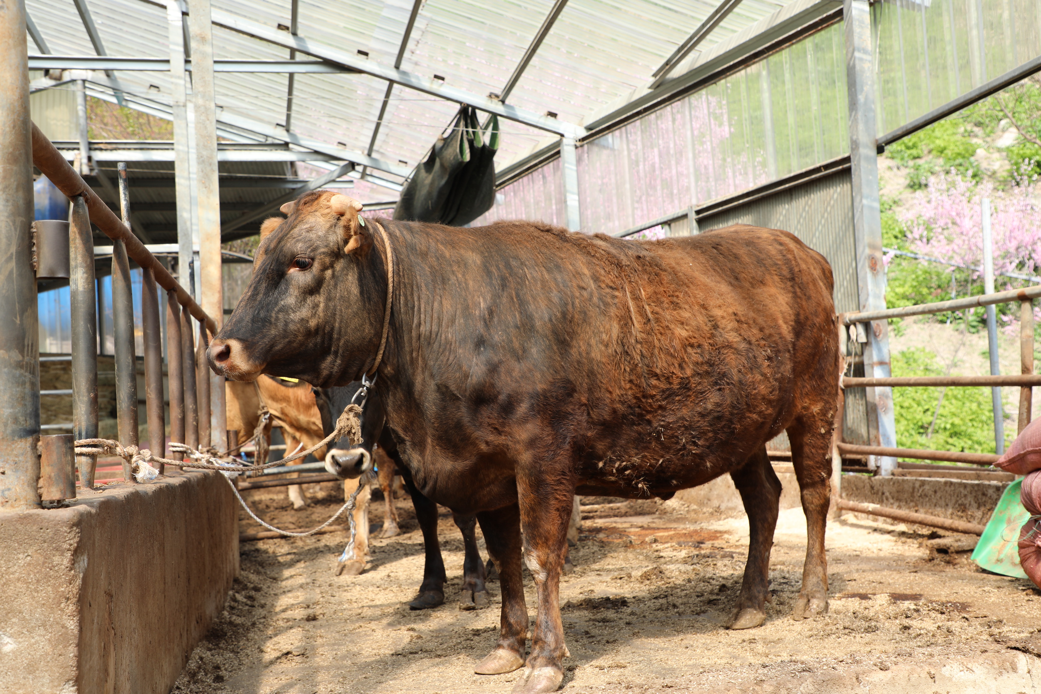 왼쪽 소는 무늬가 약하고, 오른쪽 소는 평범한 한우로 보인다.