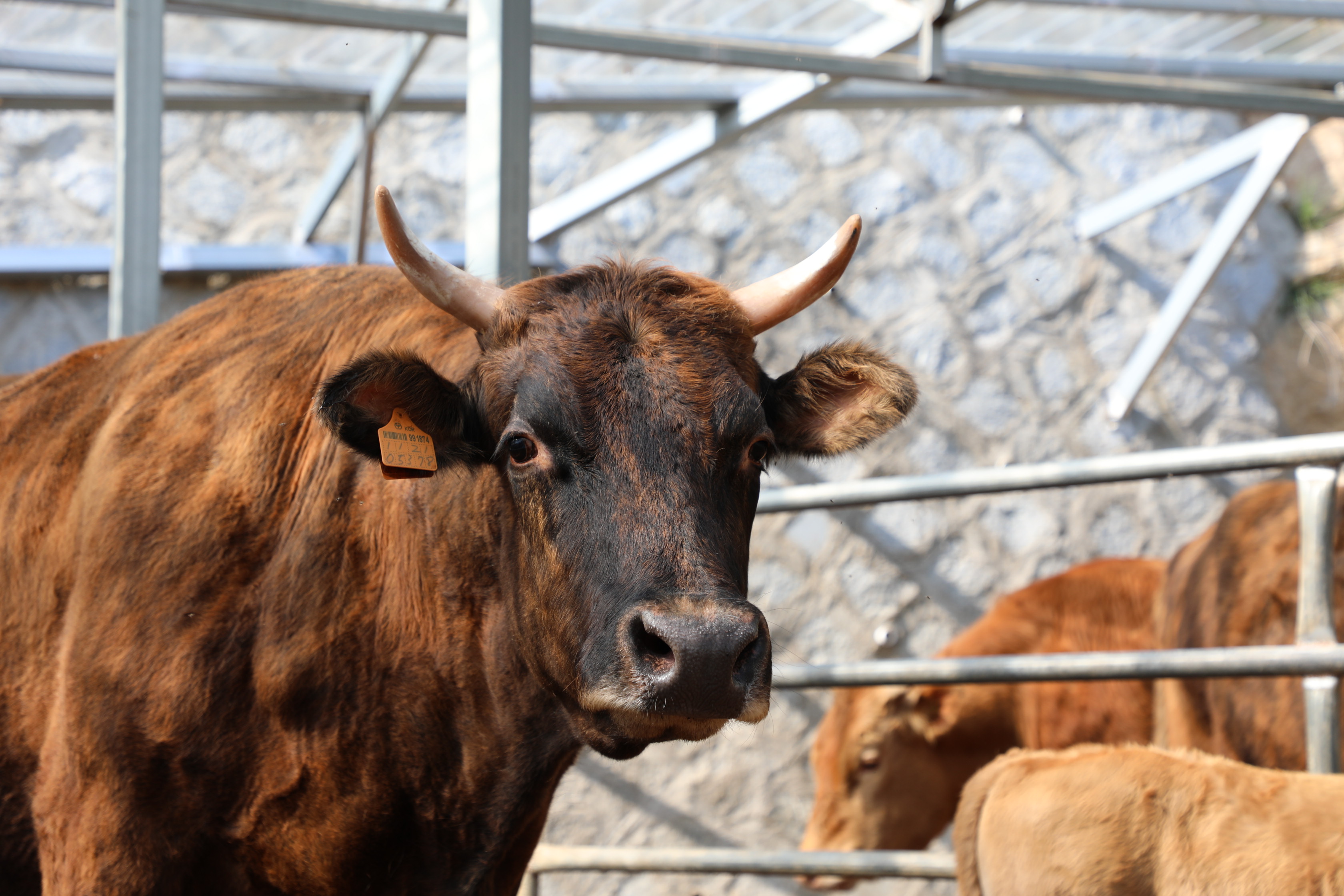 칡소 농가에 갑자기 열 명이 넘는 인원이 닥치자 칡소들은 놀란 듯 황급히 뒤로 물러난다.