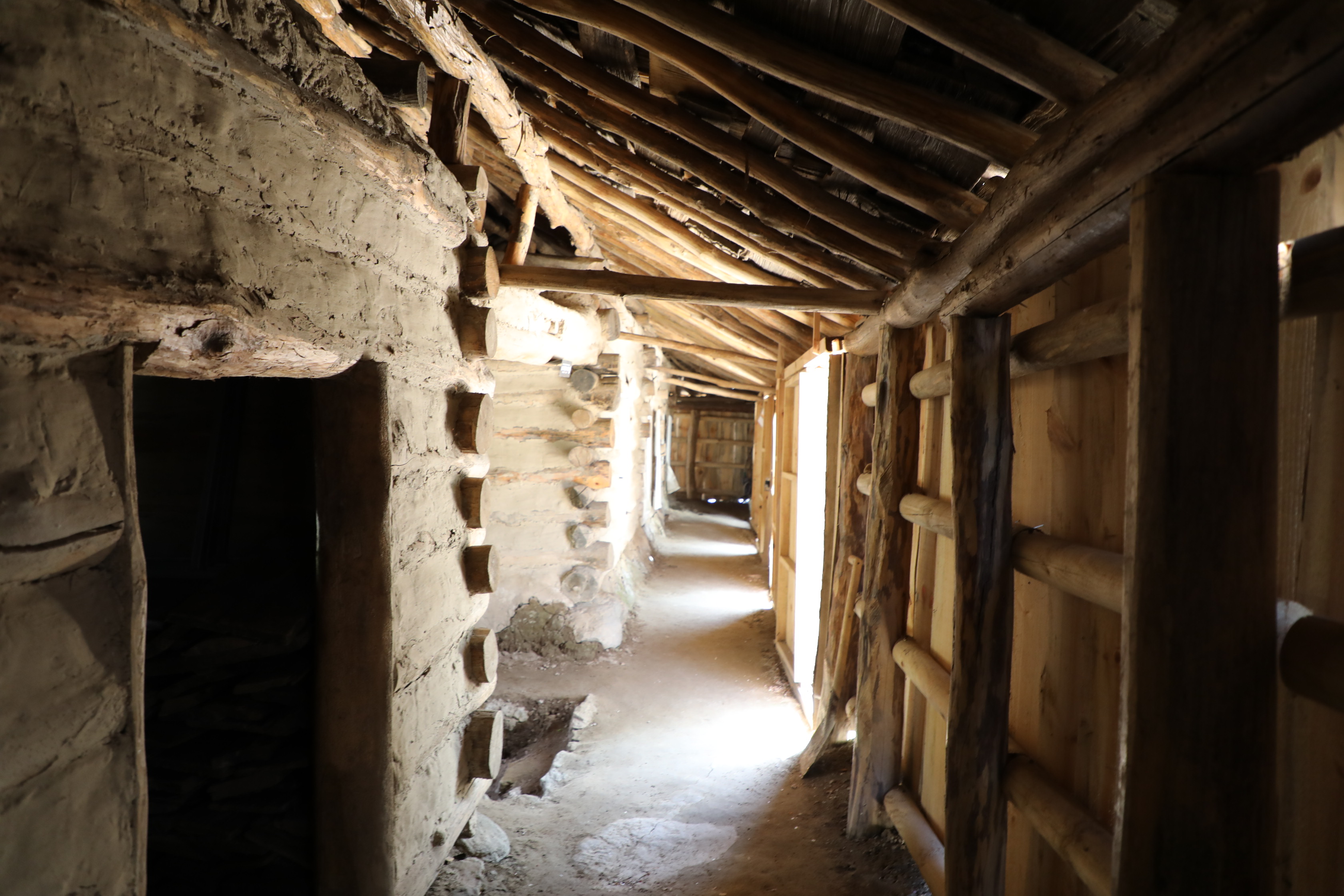집은 나무를 격자모양으로 쌓고, 흙으로 틈을 메워 냉난방 효과가 좋겠단 생각이 든다.
