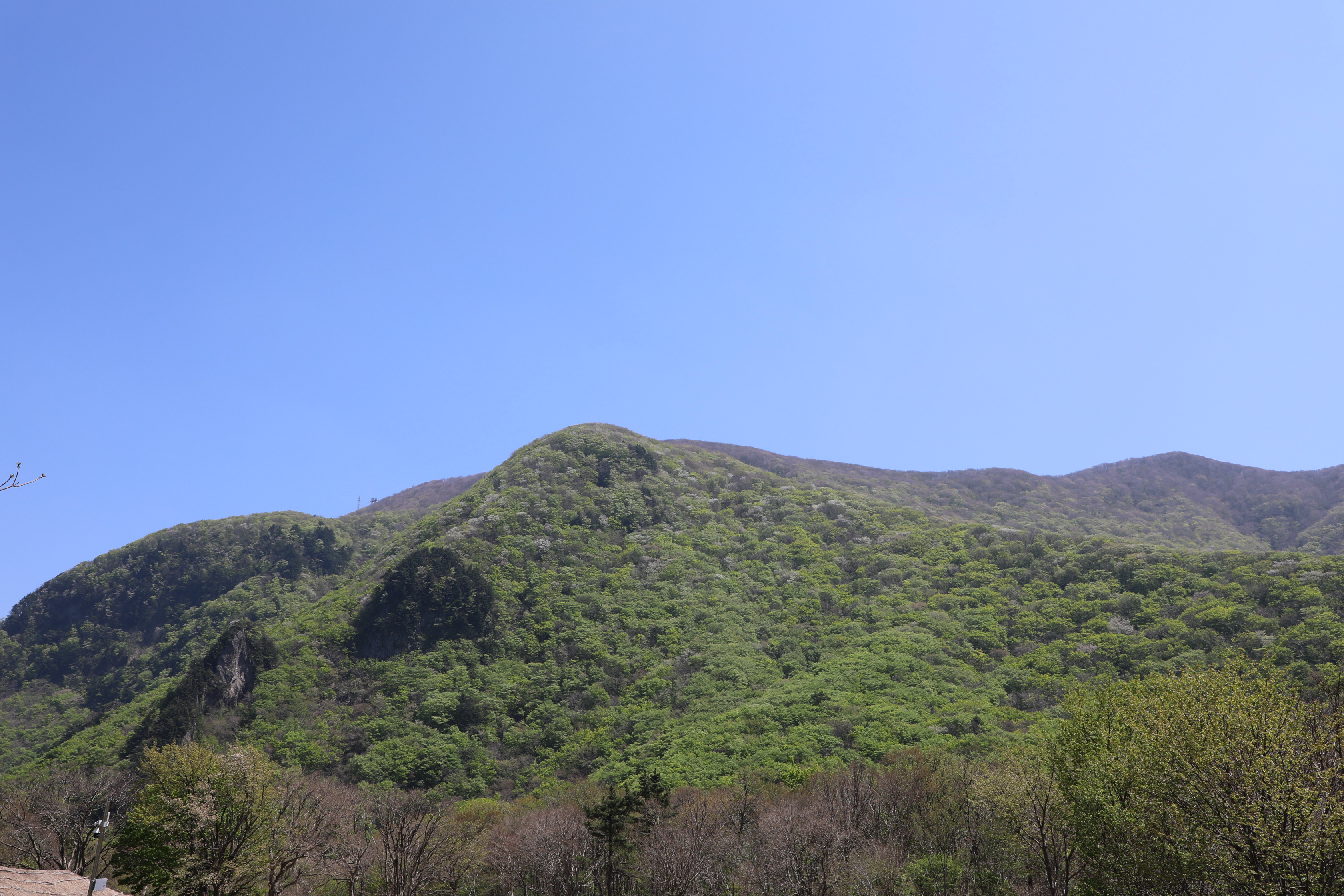 가운데 짙은 나무색 오른쪽 끝으로 연결된 봉우리가 알봉이다.