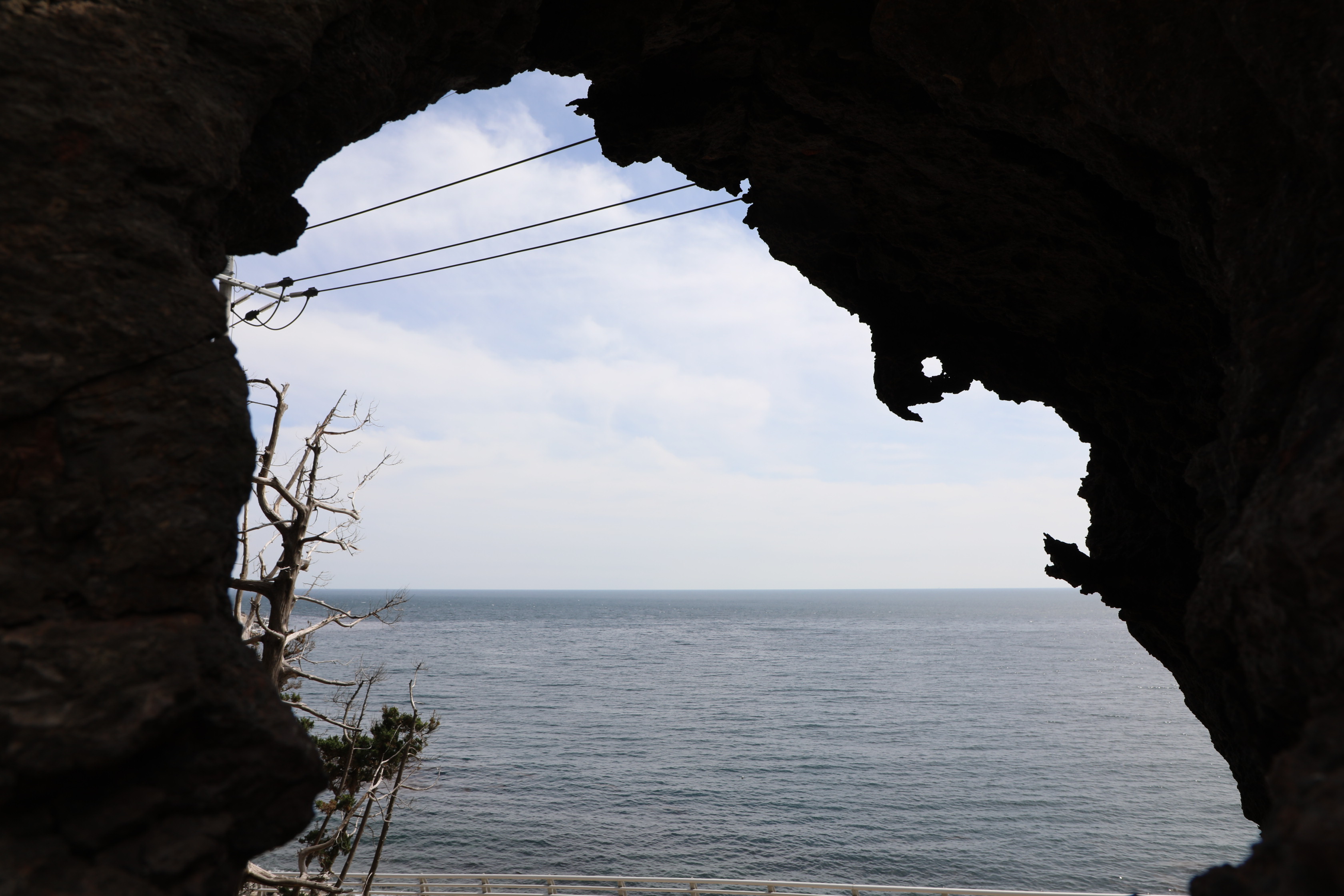 뒤로 돌아가 구멍을 통해 바다를 본다.
