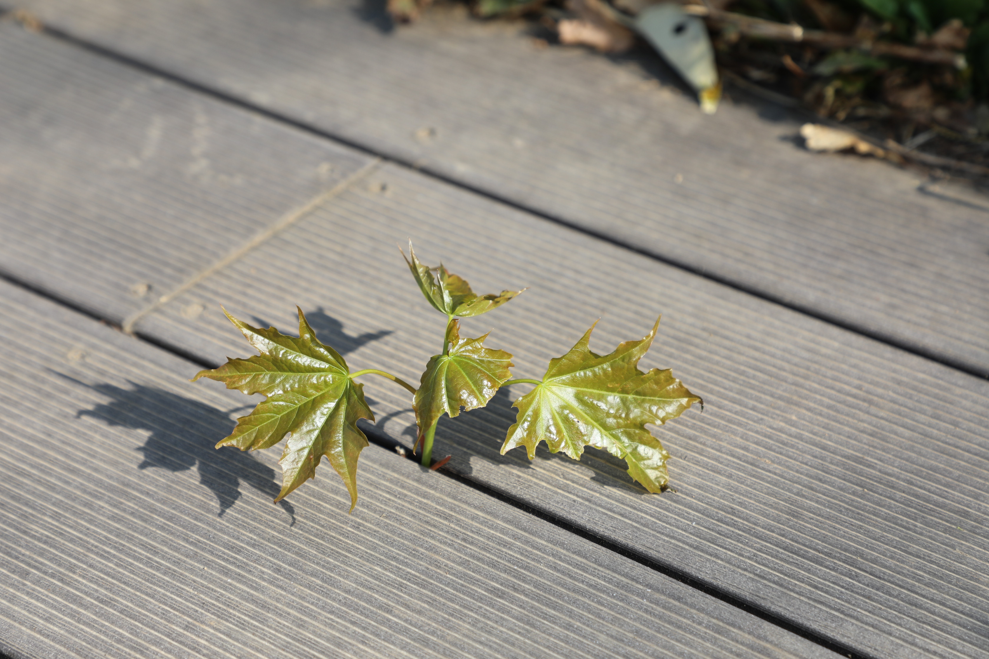 전망대 나무데크 사이를 뚫고 나뭇잎이 용케 올라왔다.