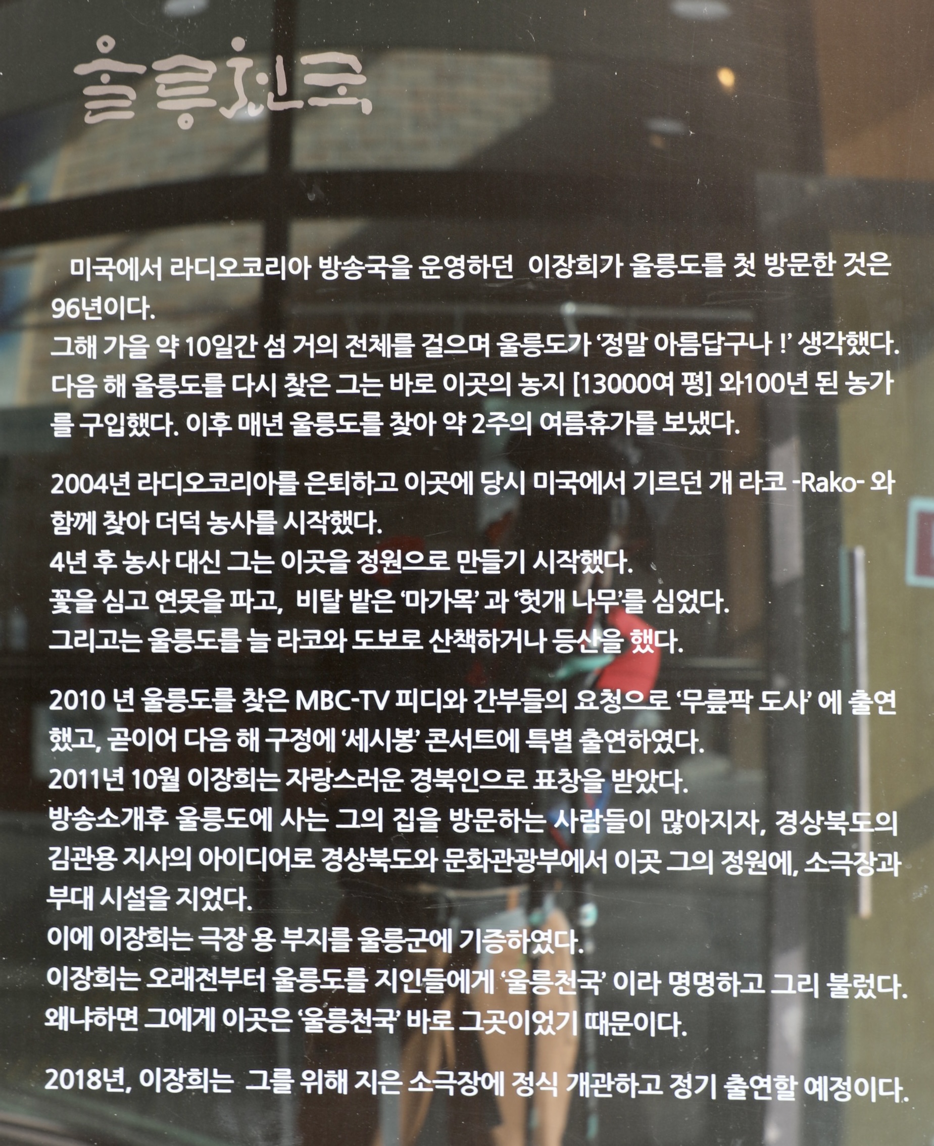 울릉천국 안내문이다.