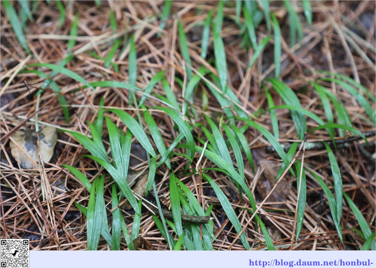 산에 아무렇게나 뿌린 씨에서 자란 2년생 명이나물이다.