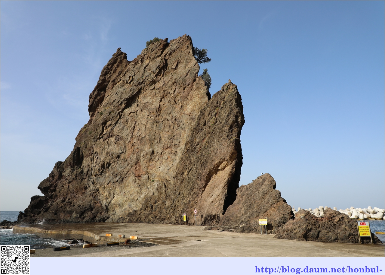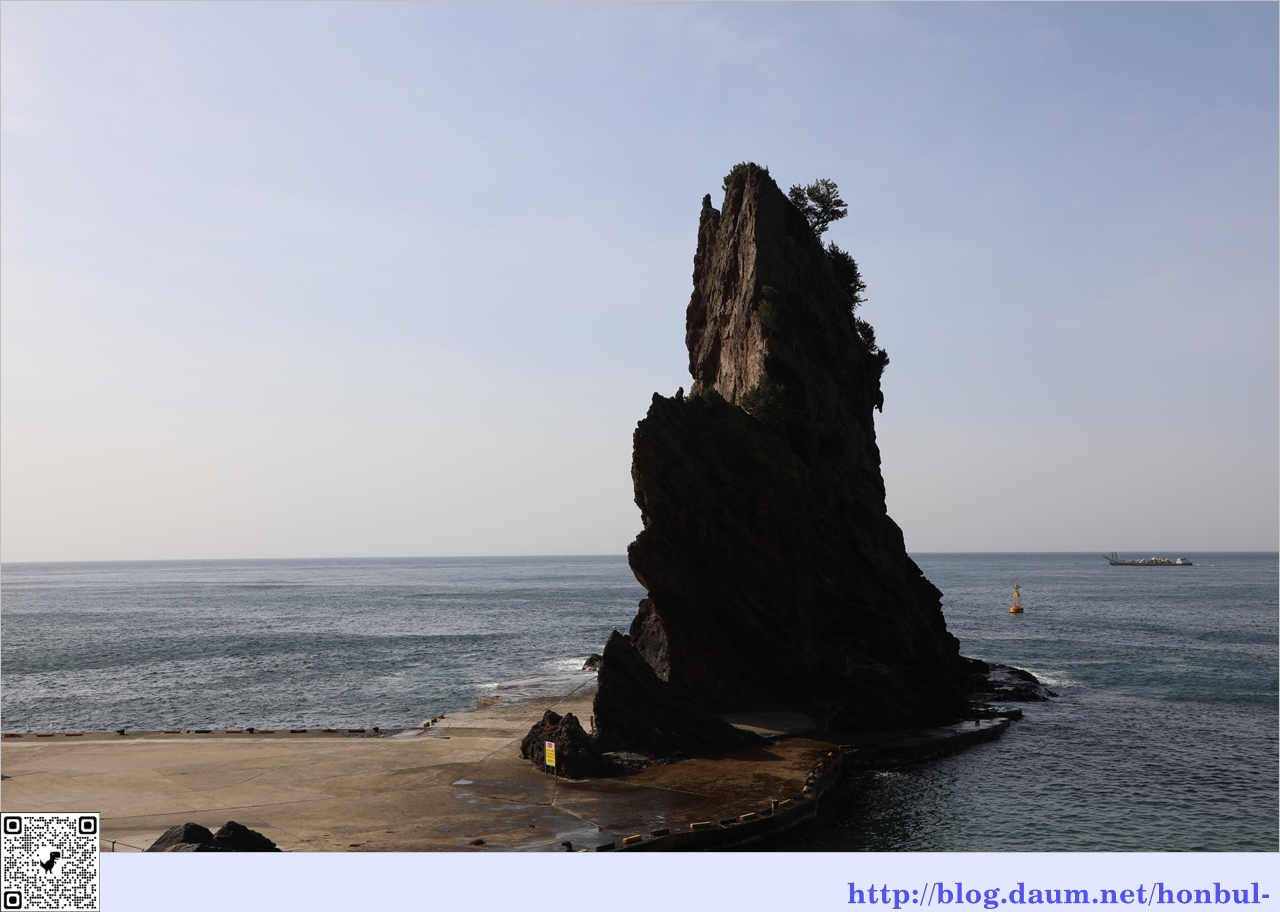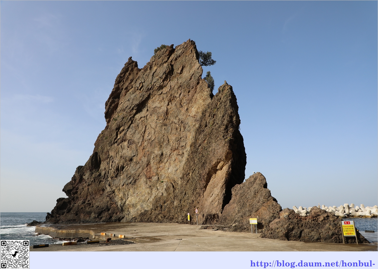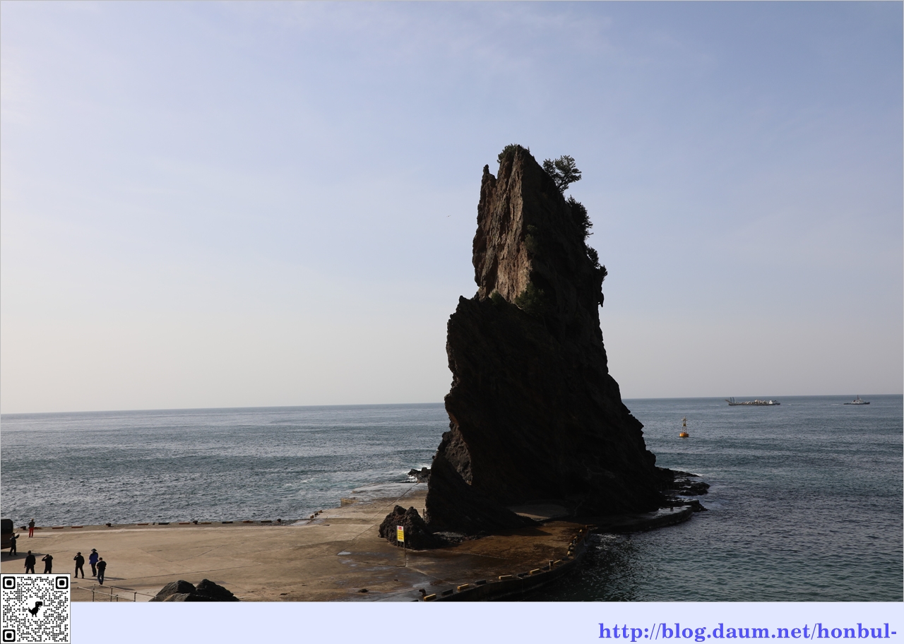 바다를 향해 남쪽으로 서 있기에 동쪽과 서쪽에서 보지 않으면 좁고 길게 솟은 바위로 보인다.