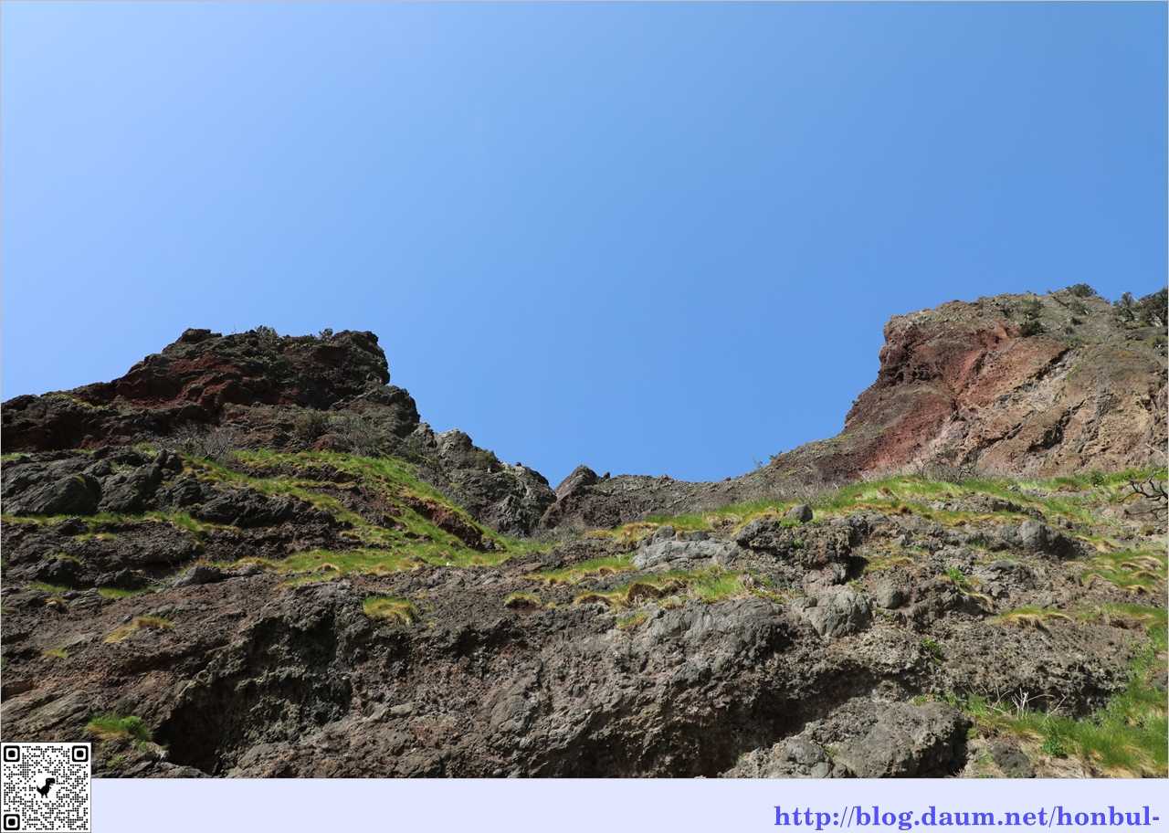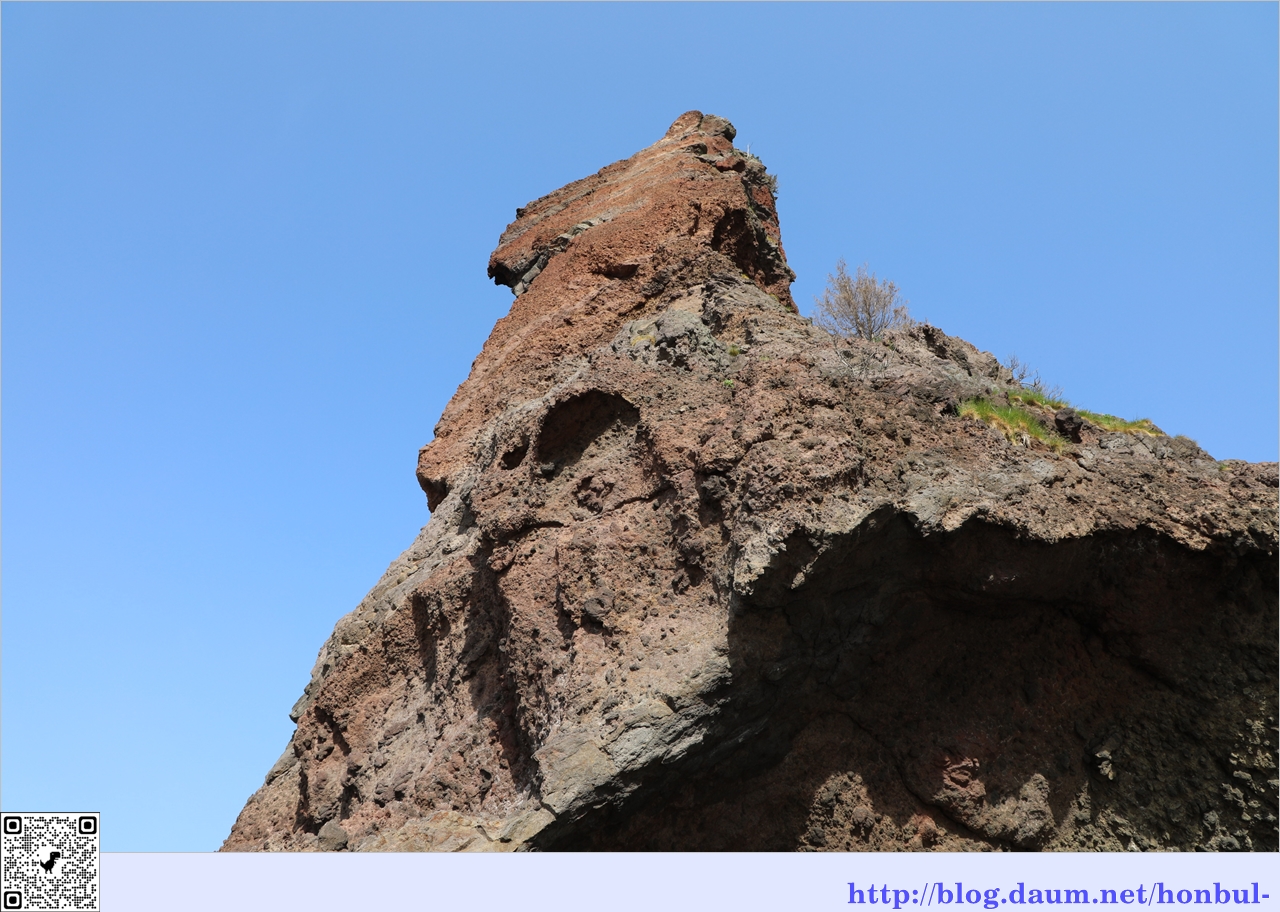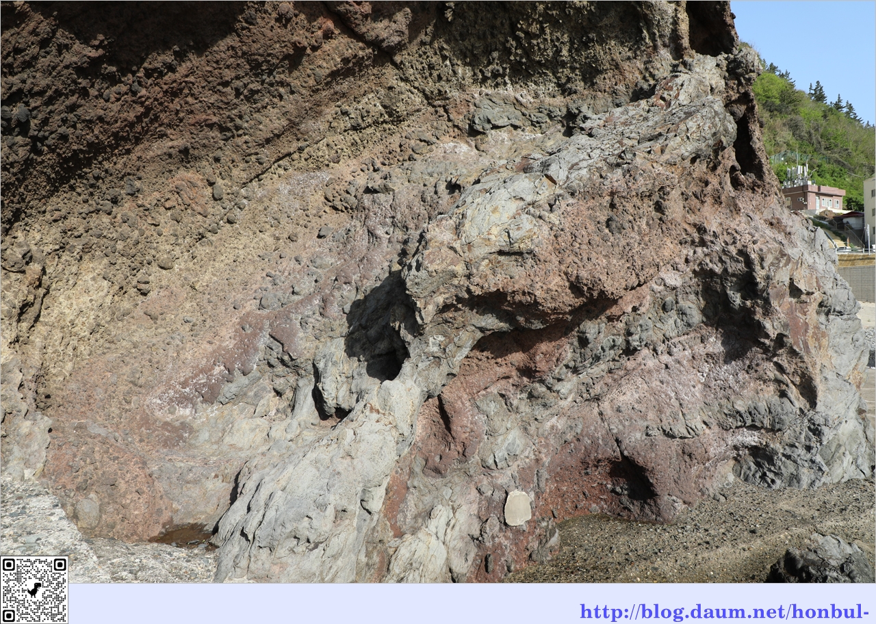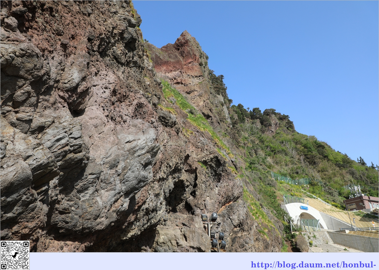 따라서 현무암질 용암이 경사면을 따라 반복적으로 흐른 구조를 관찰할 수 있으며,