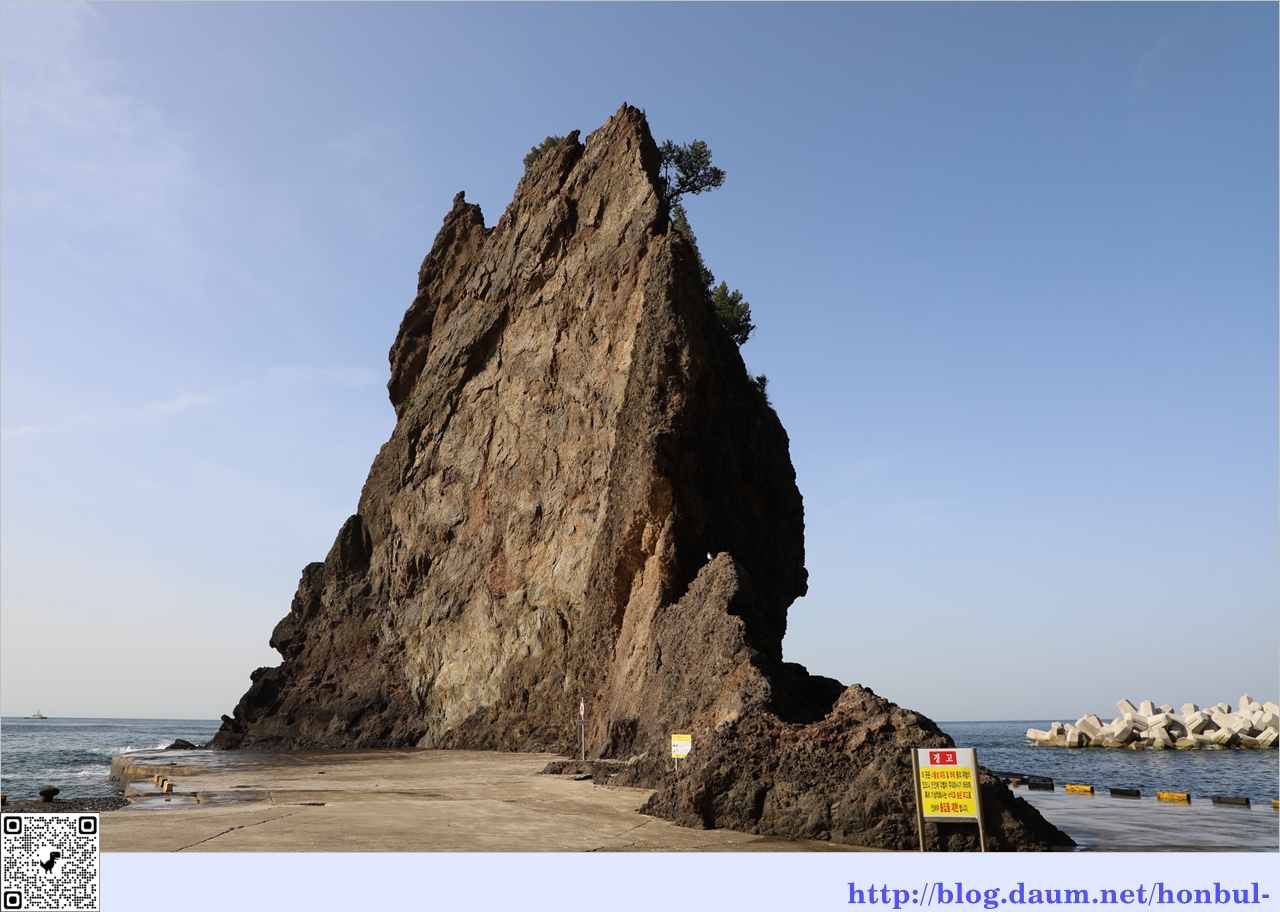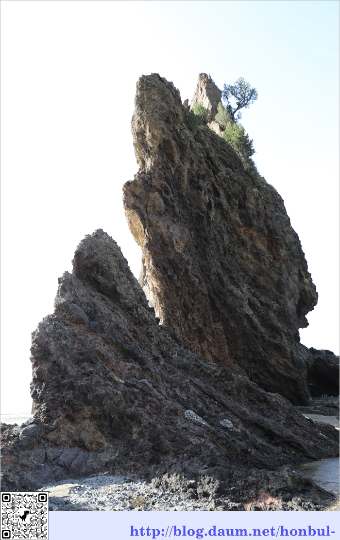 이곳은 바다 쪽으로 돌출된 단단한 암석이 파랑에 의해 주변부만 침식되어 고립된 바위섬, 즉 시스택이다.