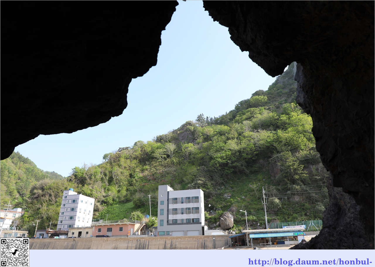 카카오 맵 지도에는 저 바위 뒤로 성인봉 가재굴이 있다고 표기한다.