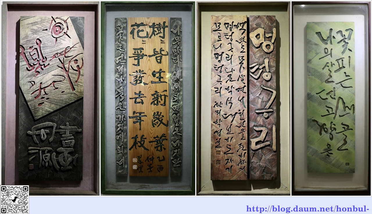 왼쪽 첫 번째 그림은 서화동원(書畵同源)으로 글과 그림은 뿌리가 같다는 뜻이다.