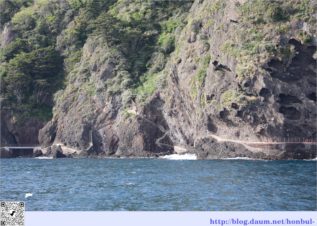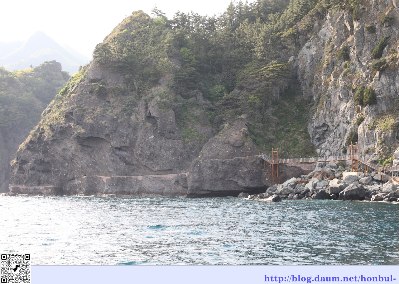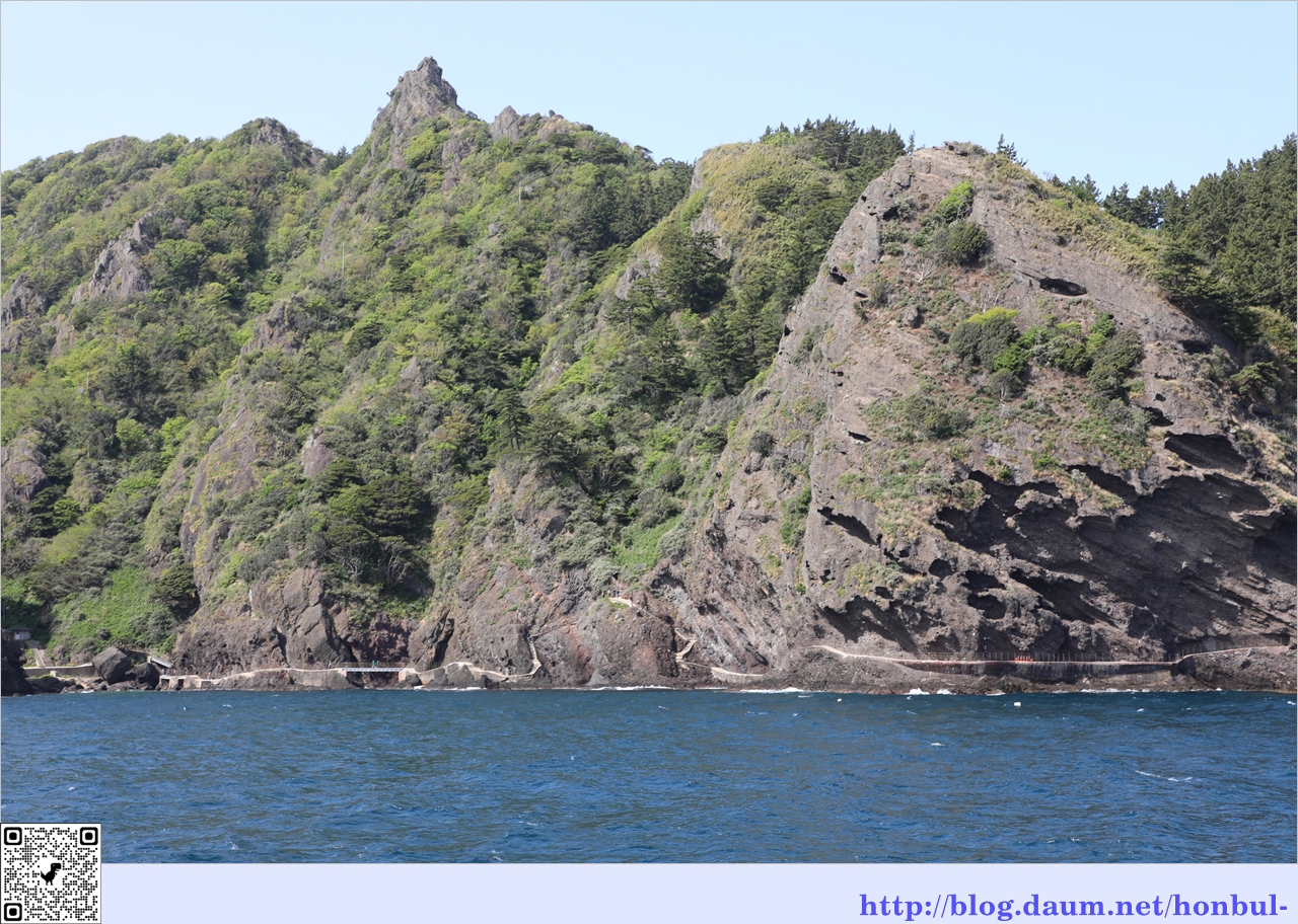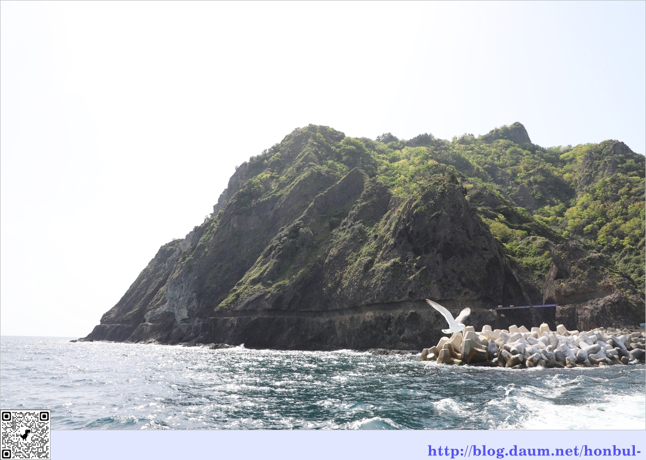울릉도 부속 섬 중 가장 큰 섬인 죽도로 가는 길이다.
