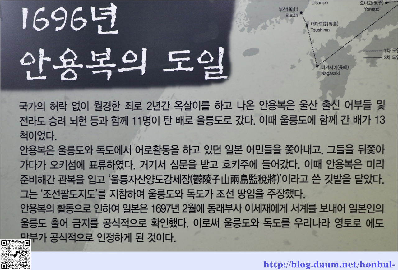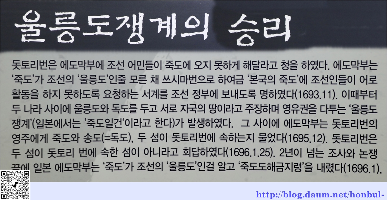 이때 호키주[伯耆州] 태수와 에도막부에게 울릉도가 우리 땅임을 주장하고,