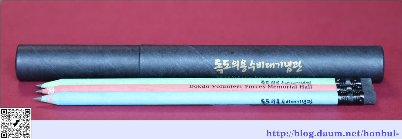 독도의용수비대기념관에서 선물로 제공한 연필 세 자루