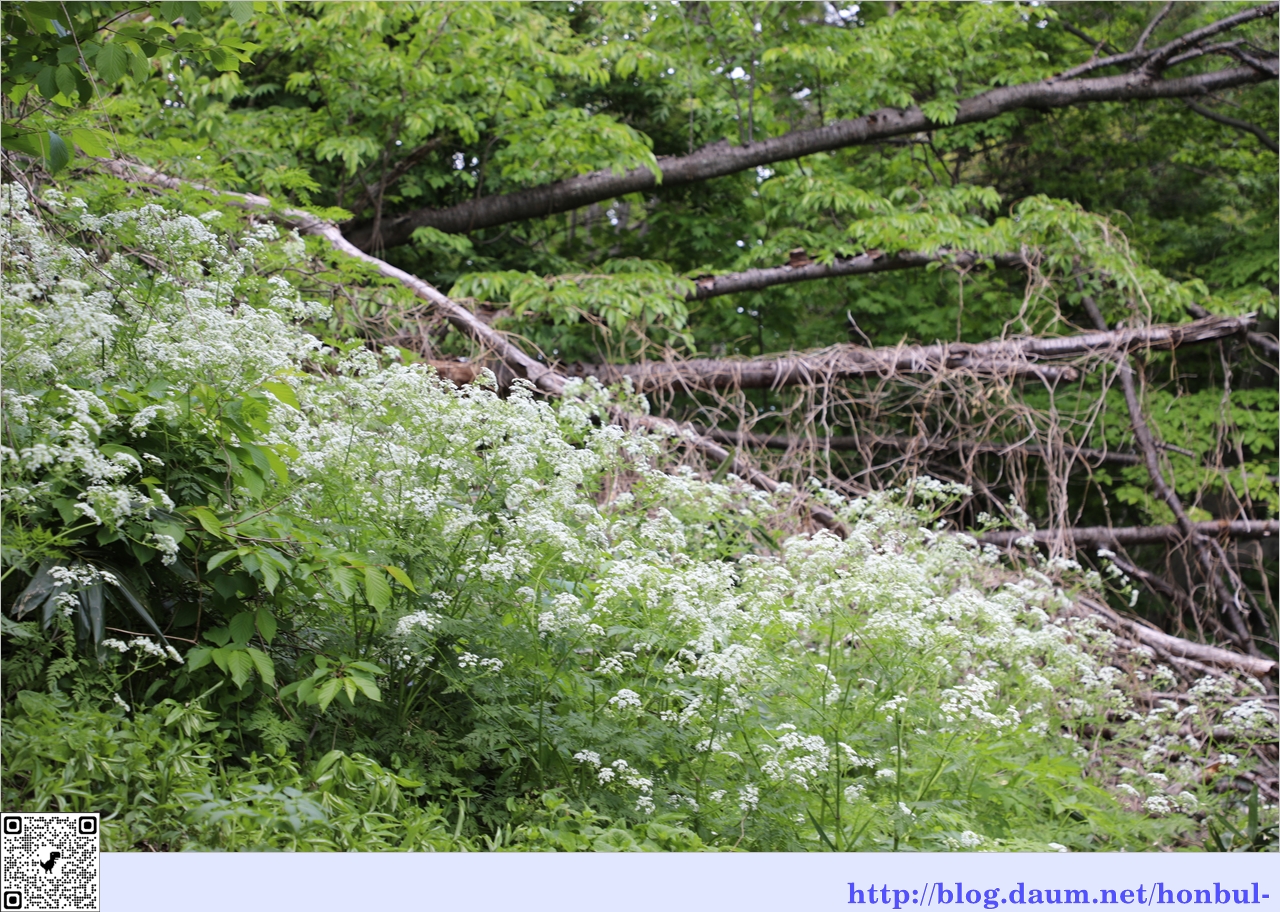 길이 막힌 곳에 전호나물 꽃이 흐드러지게 피었다.