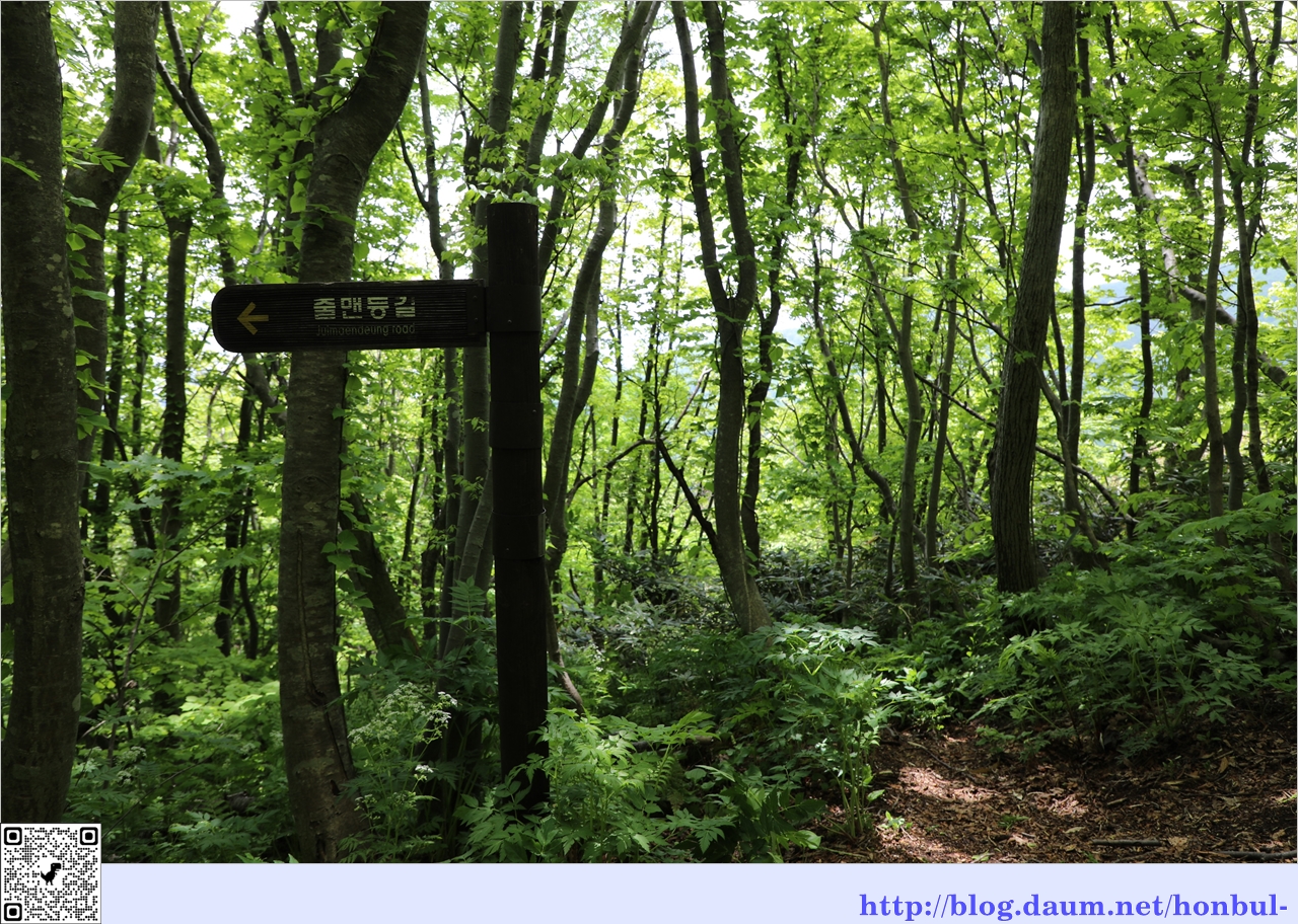 제법 지루하다 싶을 정도로 내려서니 줄맨등길 이정표가 왼쪽을 가리킨다.