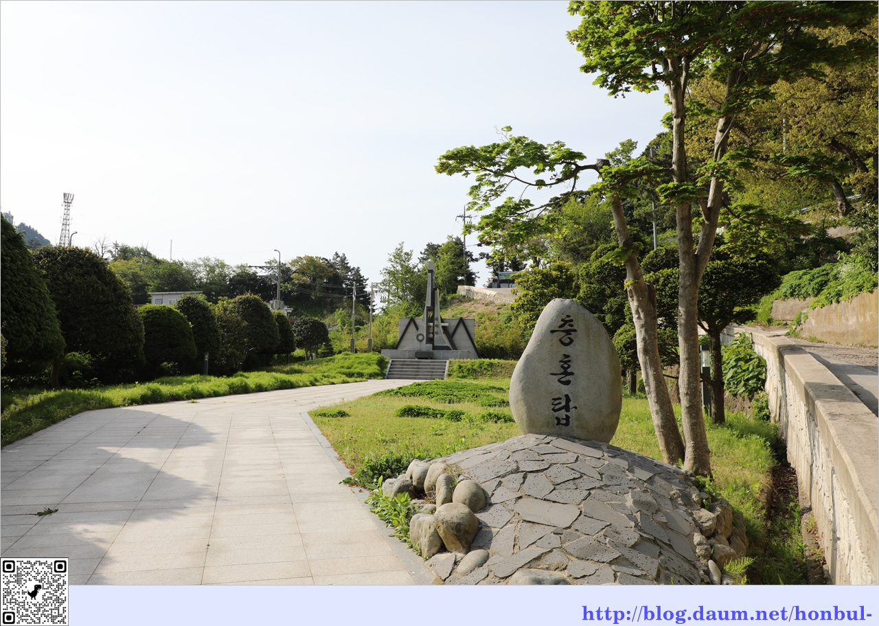 버스 정류장에서 내려 등산로를 따라 걷는 데 충혼탑이 보인다.