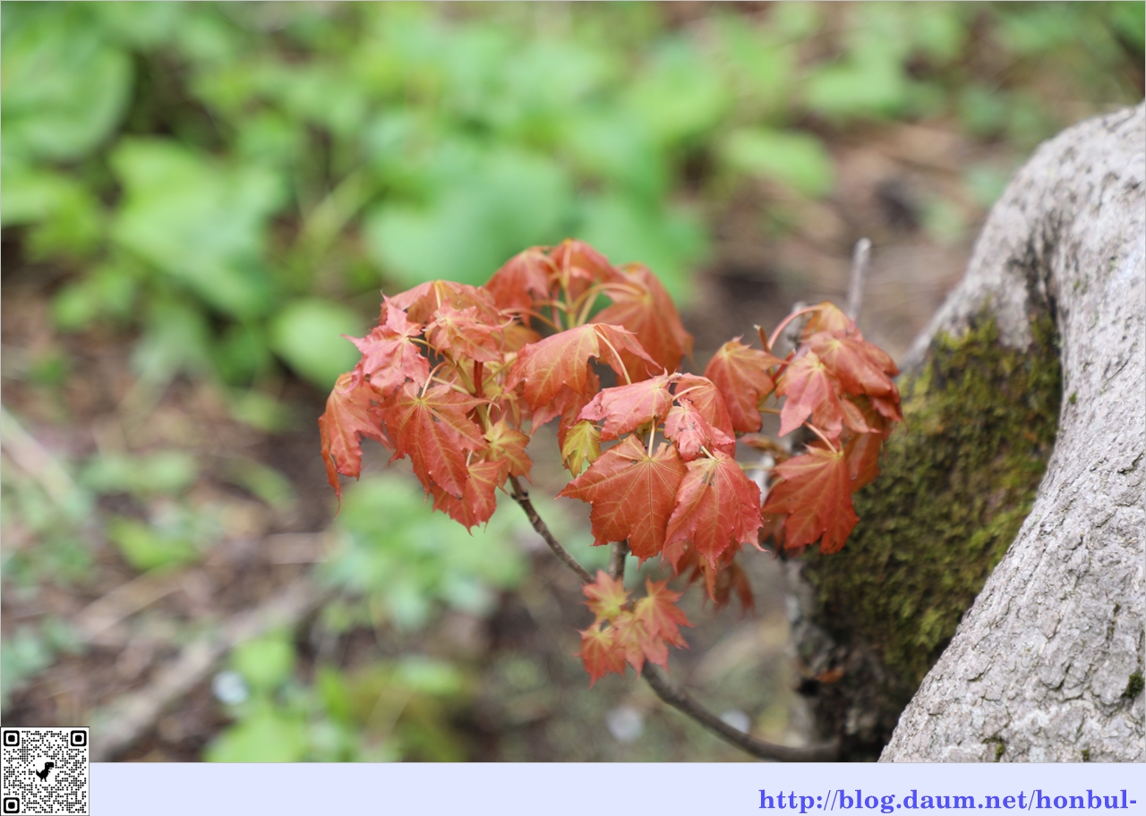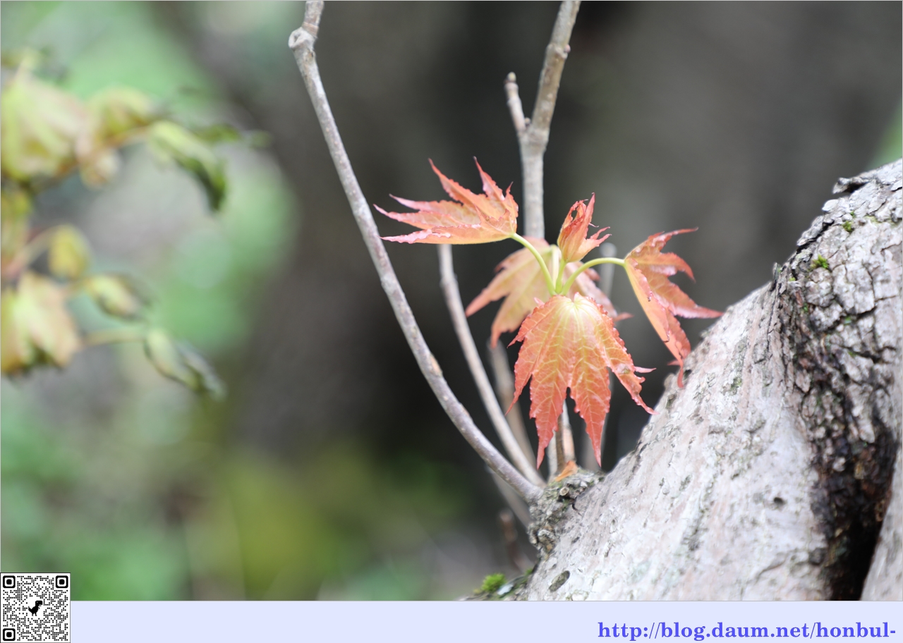 단풍나무 밑둥지에서 새순이 돋는 단풍잎은 처음부터 앙증맞은 단풍색이다.