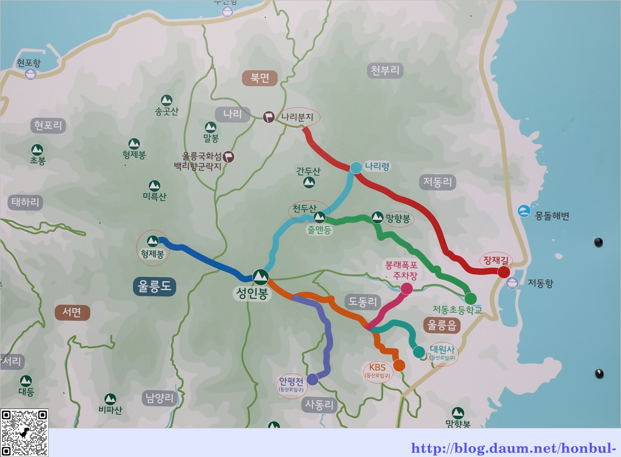성인봉을 세 번 오르는 동안 매번 코스를 달리한다.