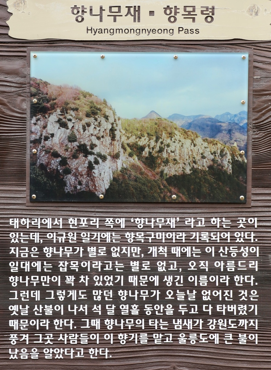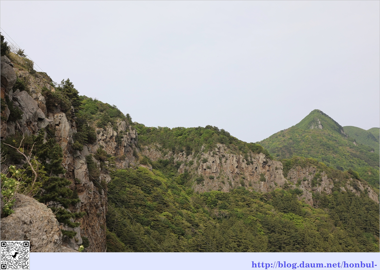 버스정류장에서 보는 성인봉 가재굴 방향의 암릉