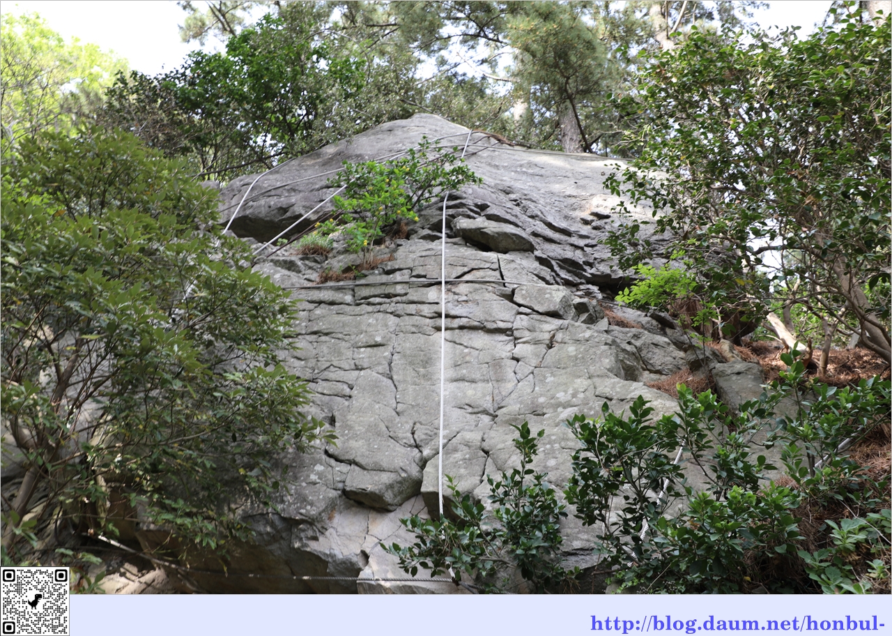 낙석이 우려되는지 바위에 이리저리 쇠줄을 걸어 안정시켰다.