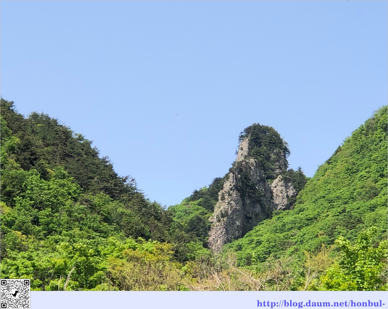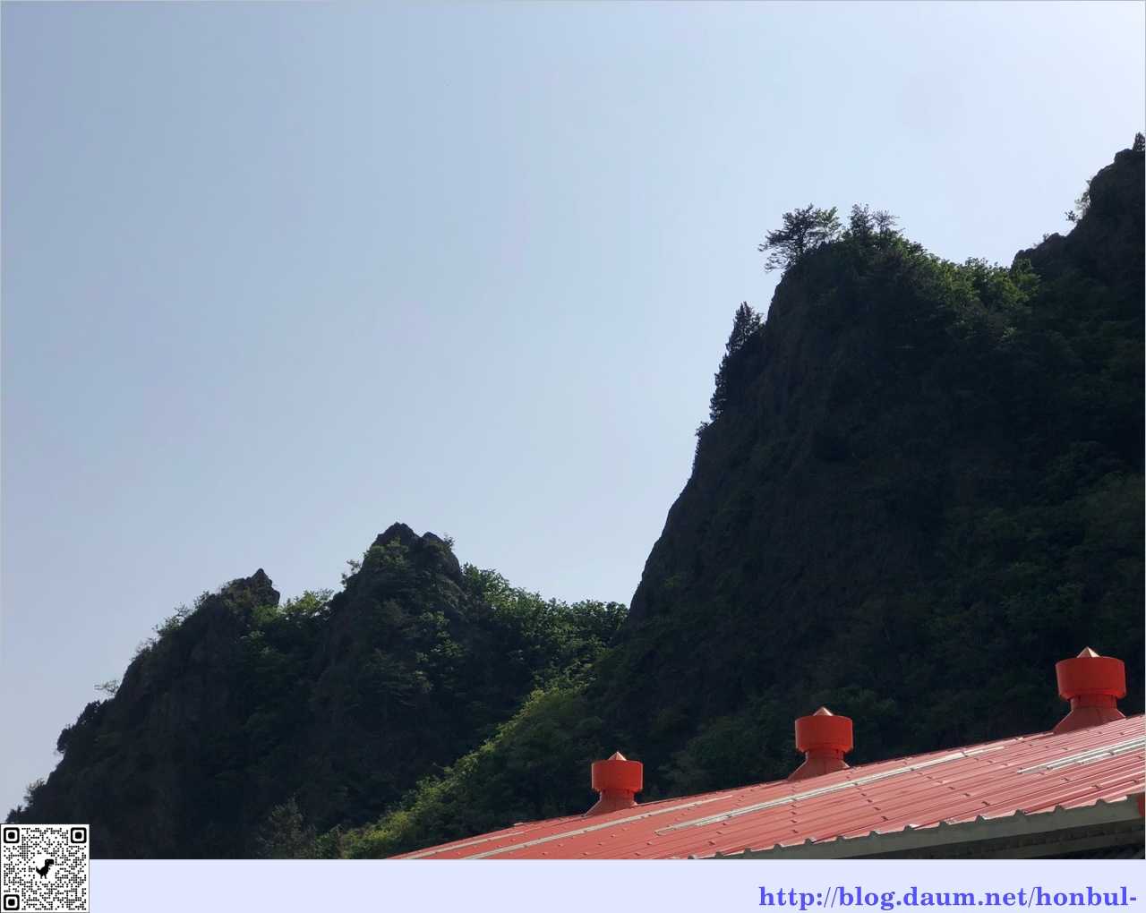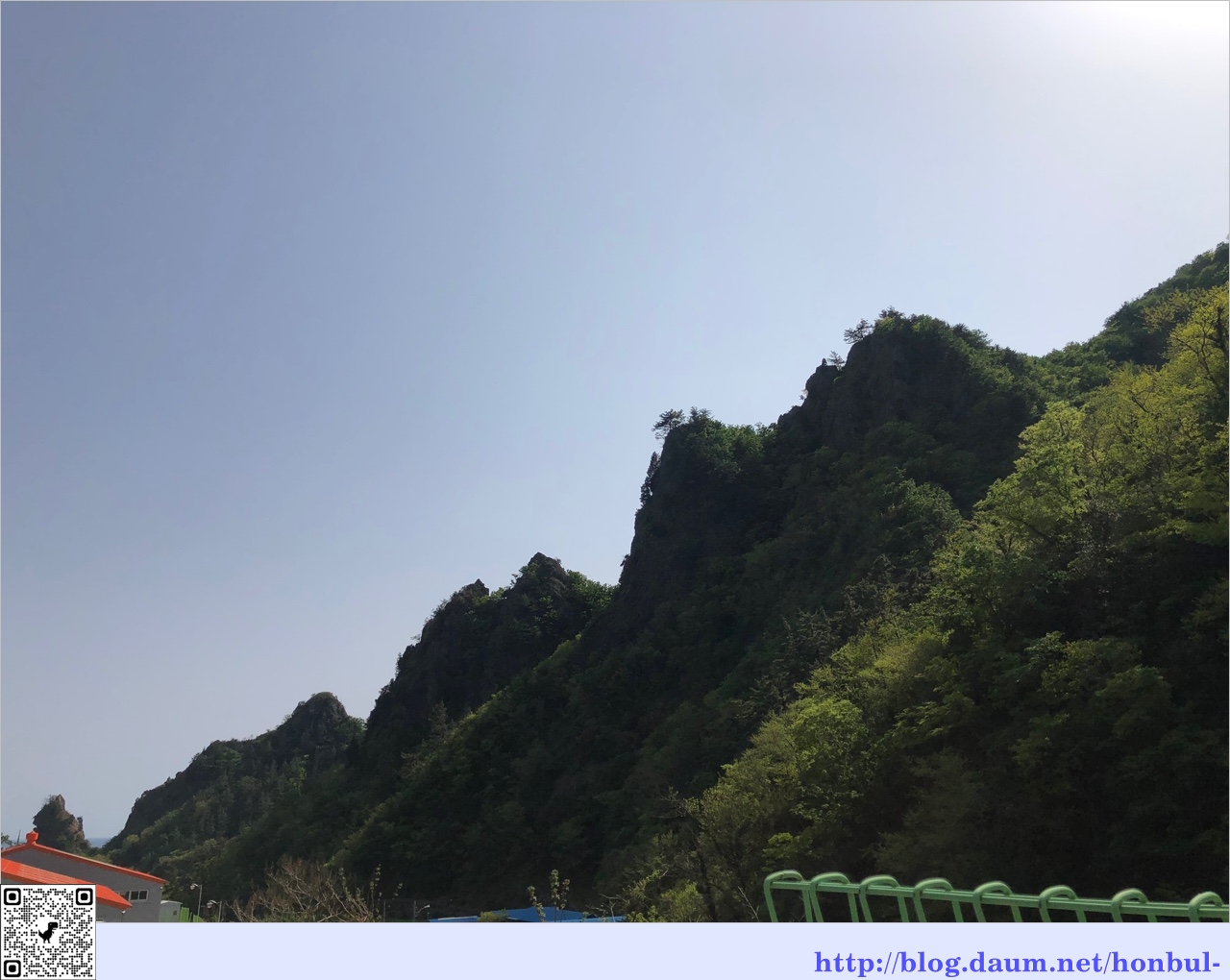 협곡을 지나 나오는 방향의 해안가 산이다.