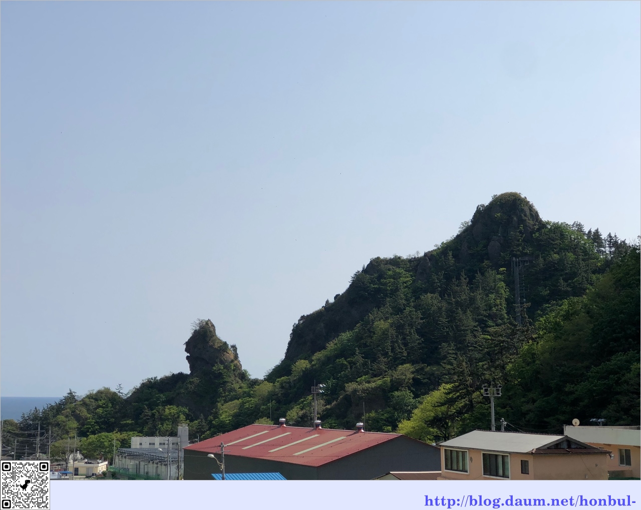아래에 있는 바위는 남양 포구에 있는 투구봉이다.