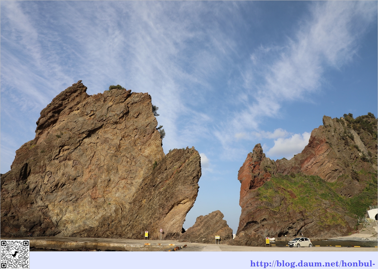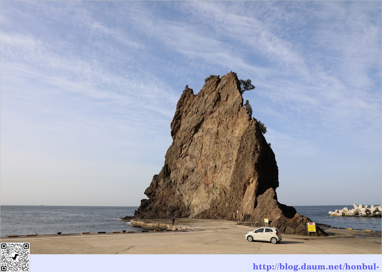 거북 바위 앞에 주차된 차량으로 바위의 크기를 짐작할 수 있다.