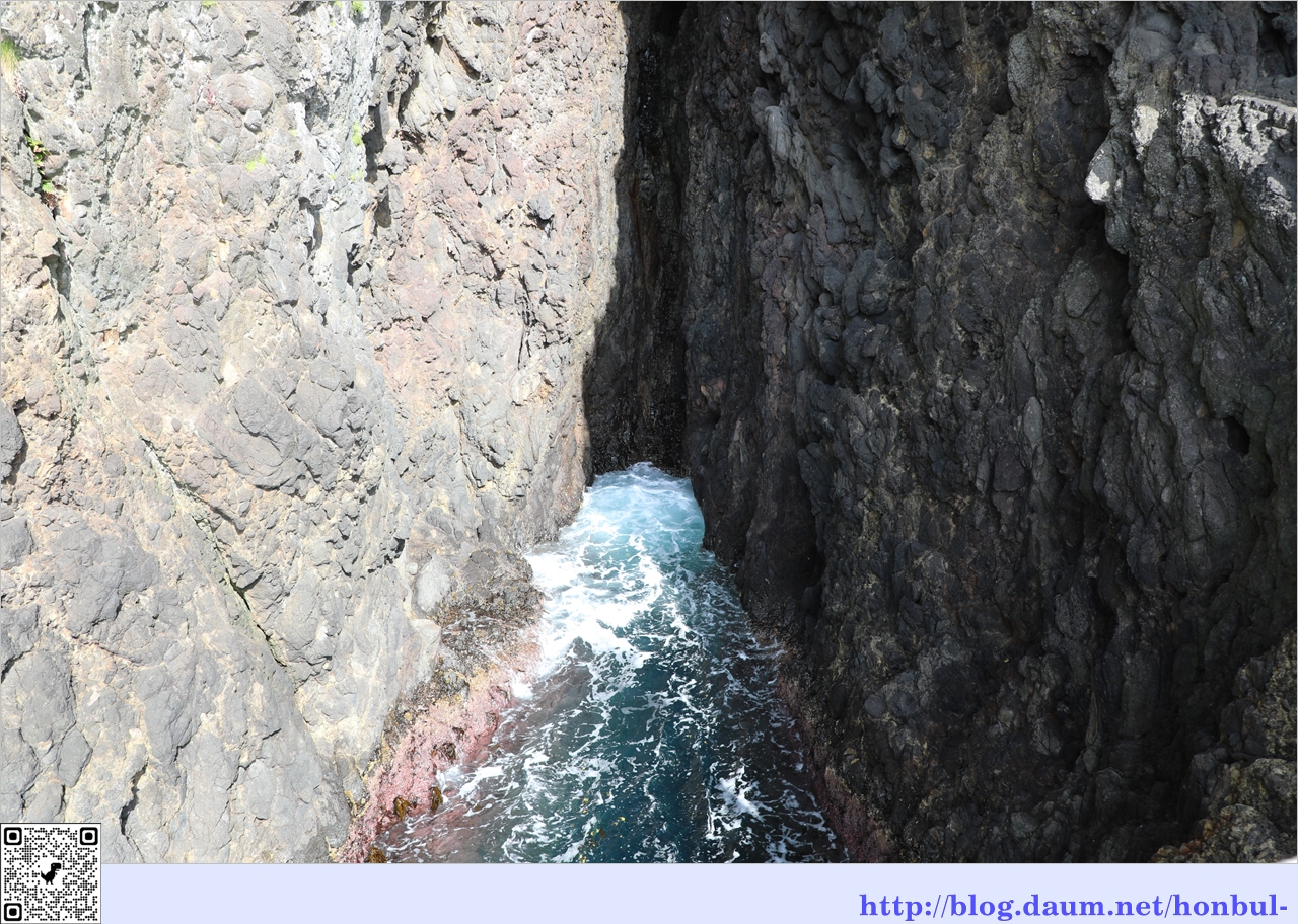 바위의 약한 부분을 침식해 들어간 침식 해안