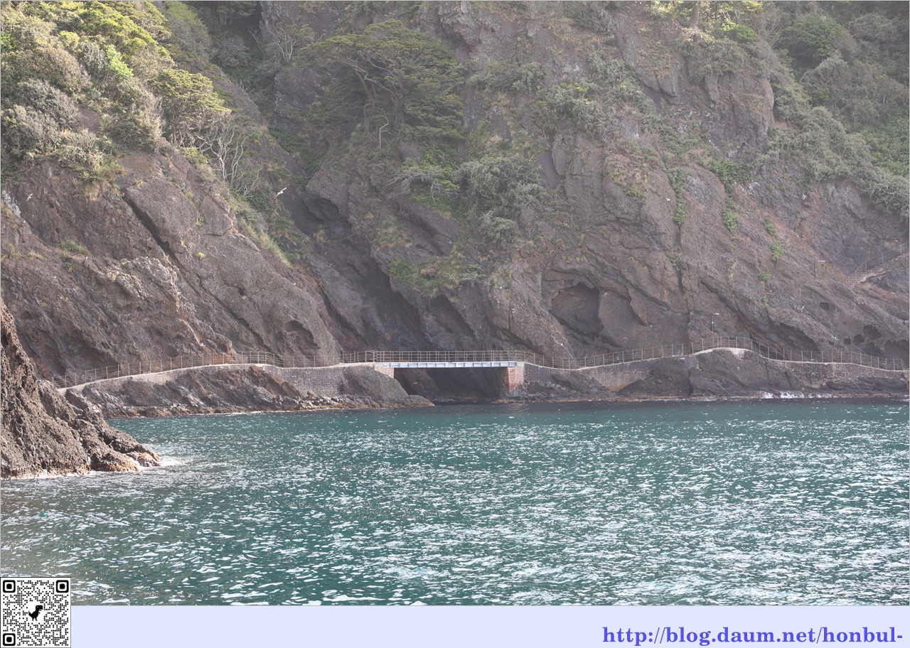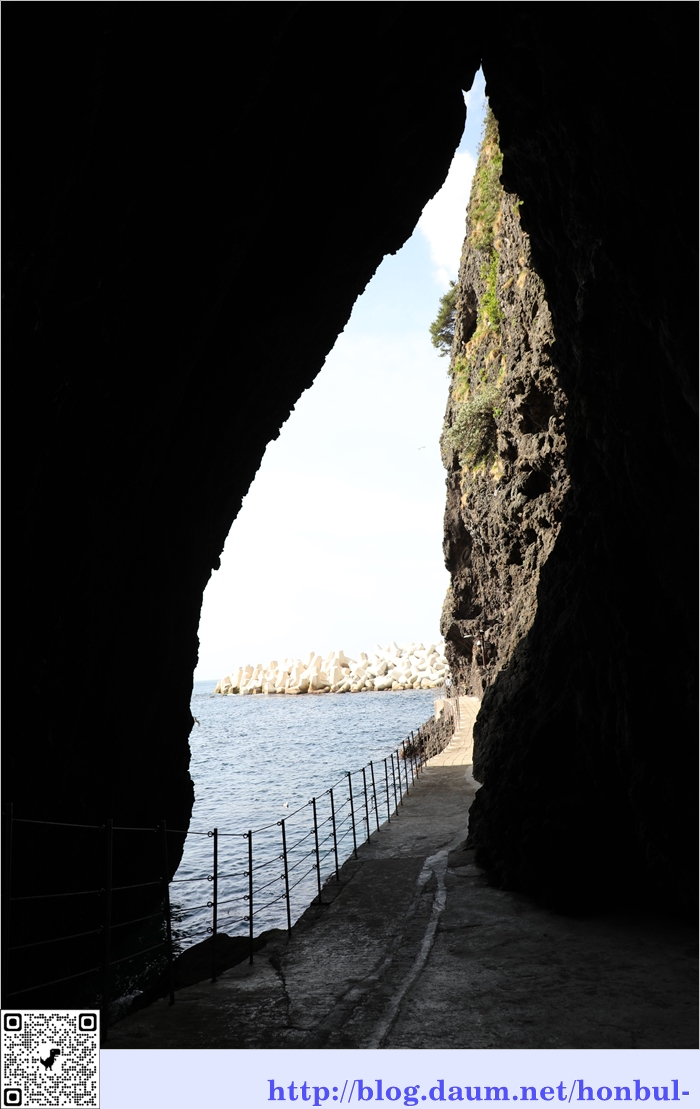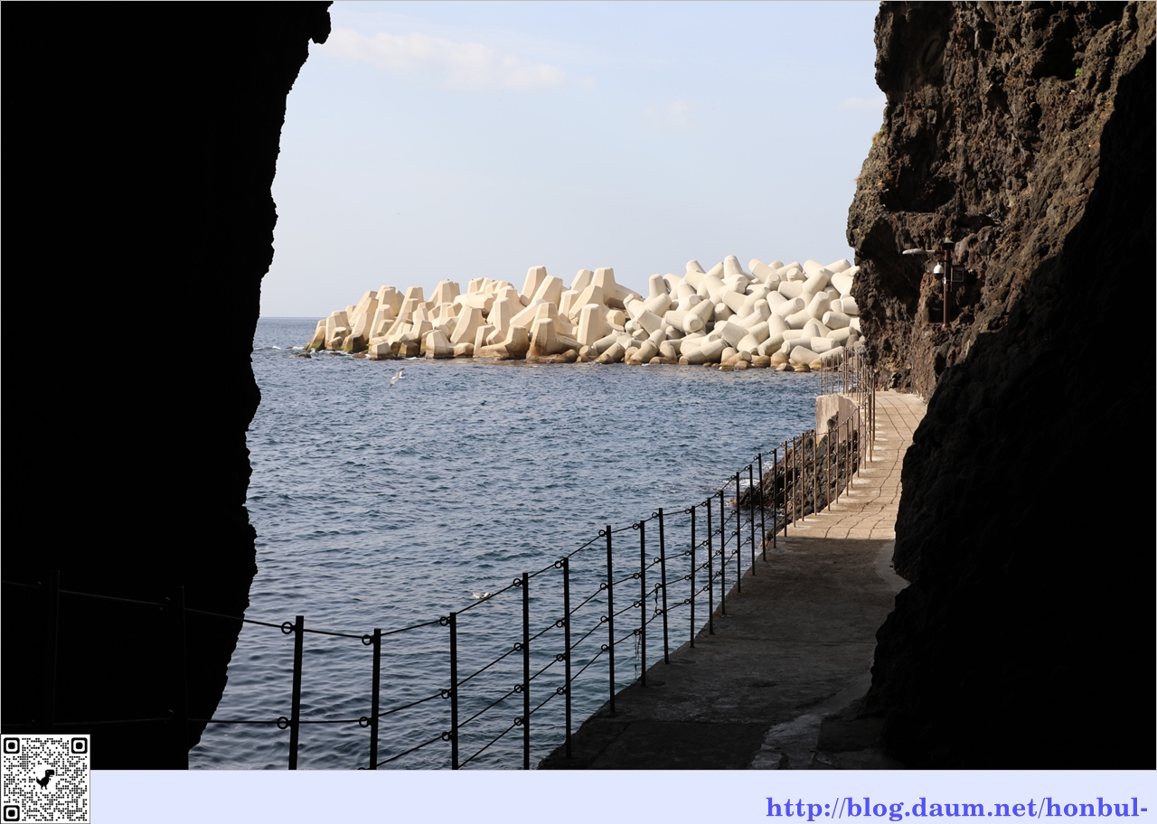 굴 밖으로 도동항 여객선 터미널 옆으로 쌓아 둔 테트라포드가 보이는 걸 보니 많이 못 왔다.
