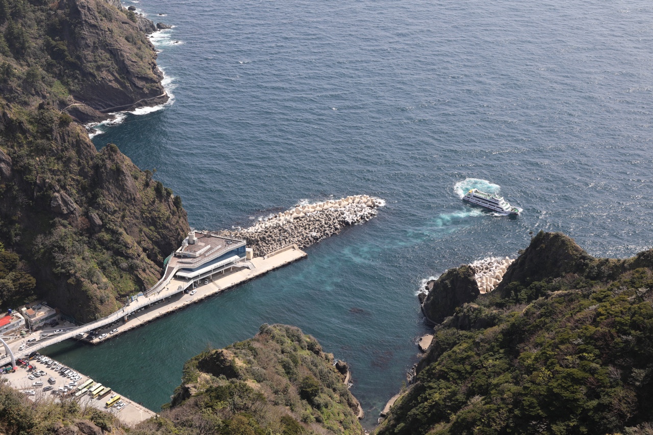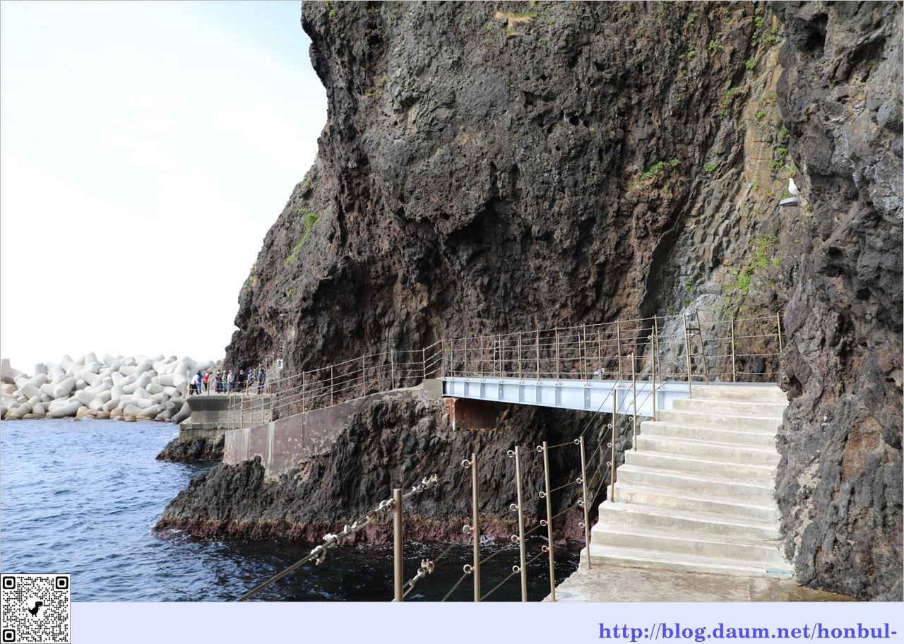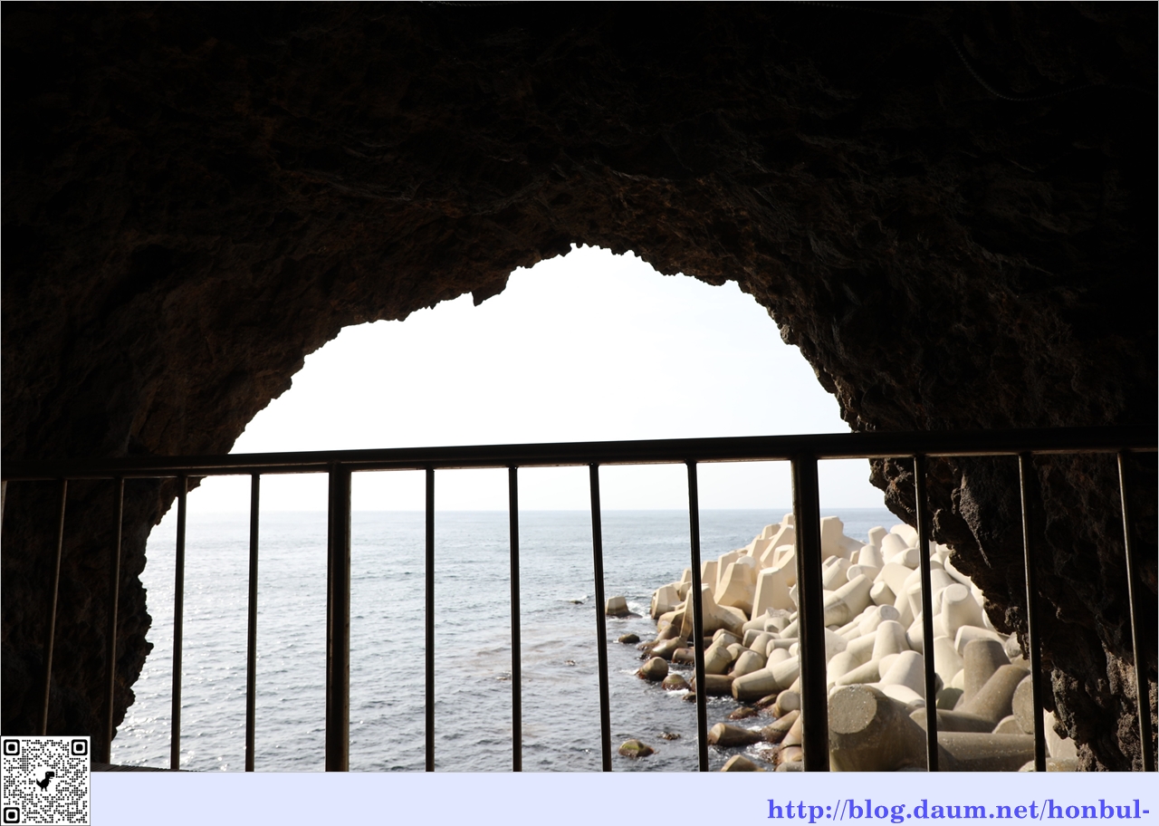 굴 밖으로 도동항 여객선 터미널 옆으로 쌓아 둔 테트라포드가 보이는 걸 보니 많이 못 왔다.