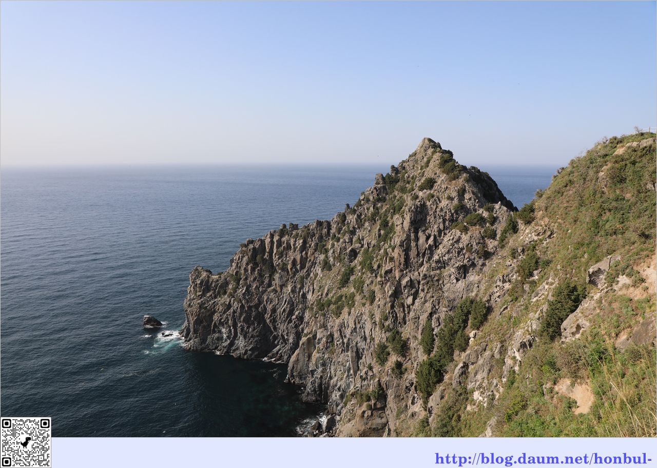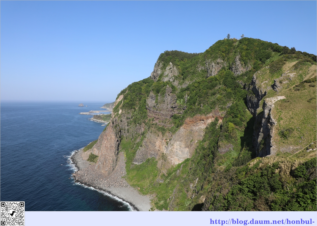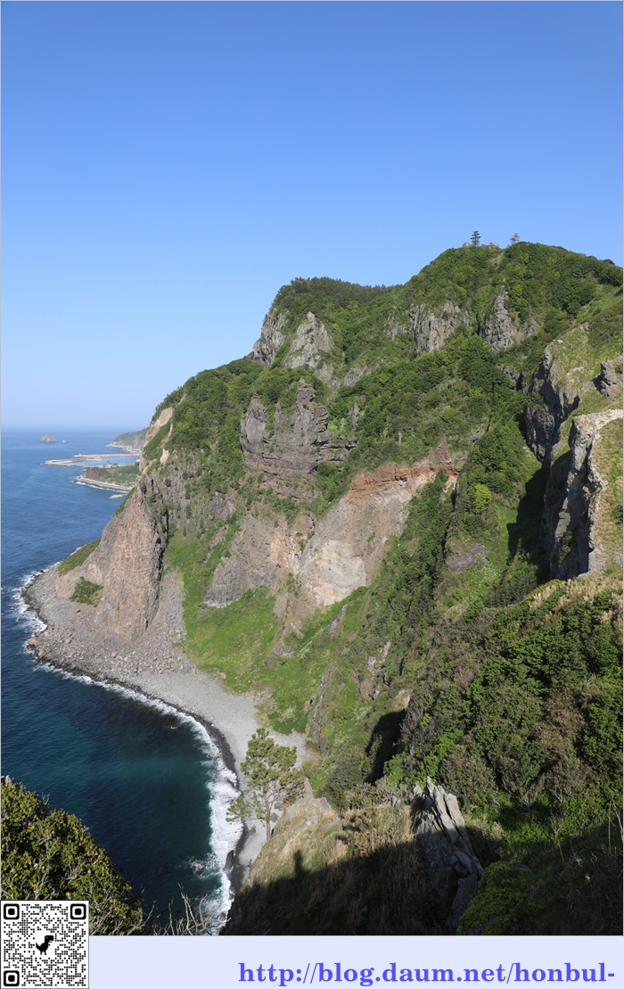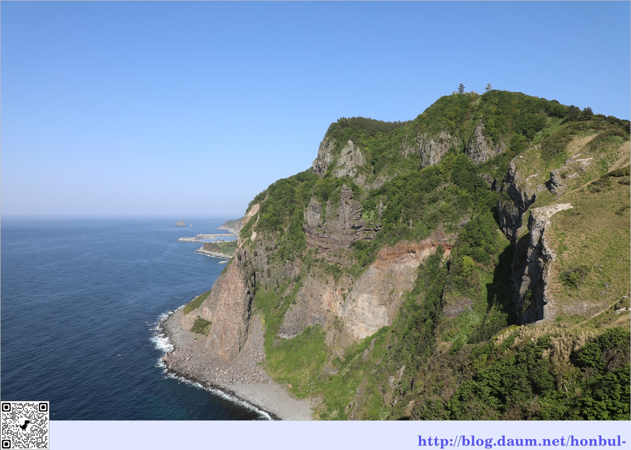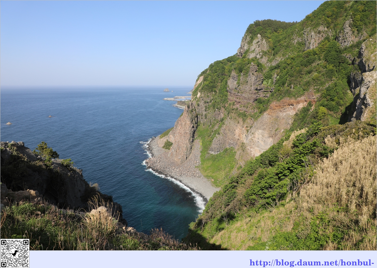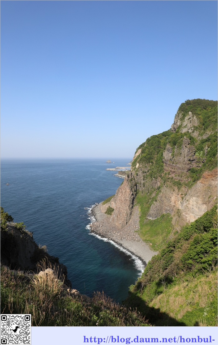 절벽은 높고 시퍼런 바닷물이 암벽에 부딪쳐 하얗게 바다와 경계 짓는다.