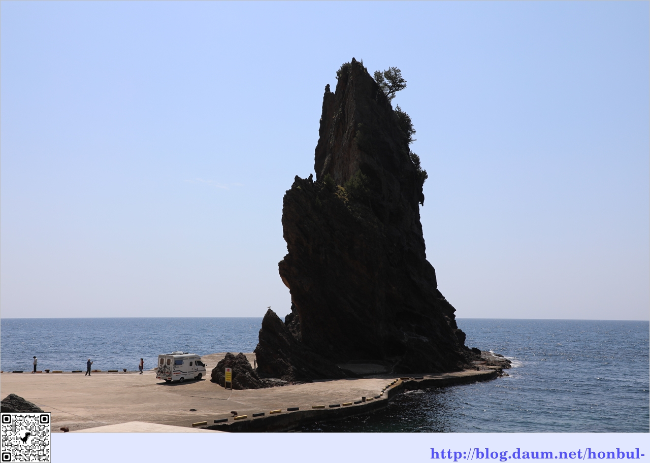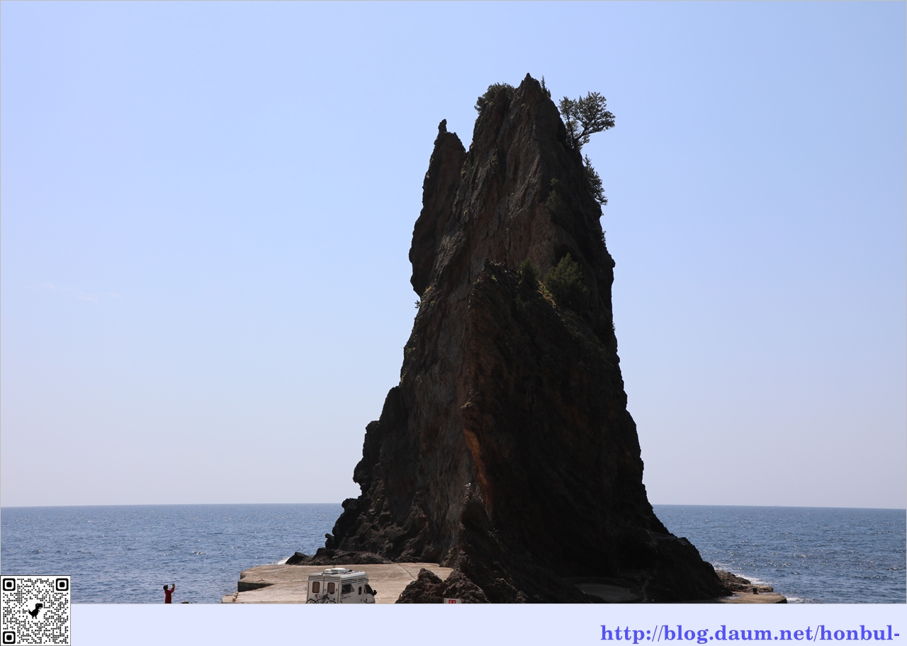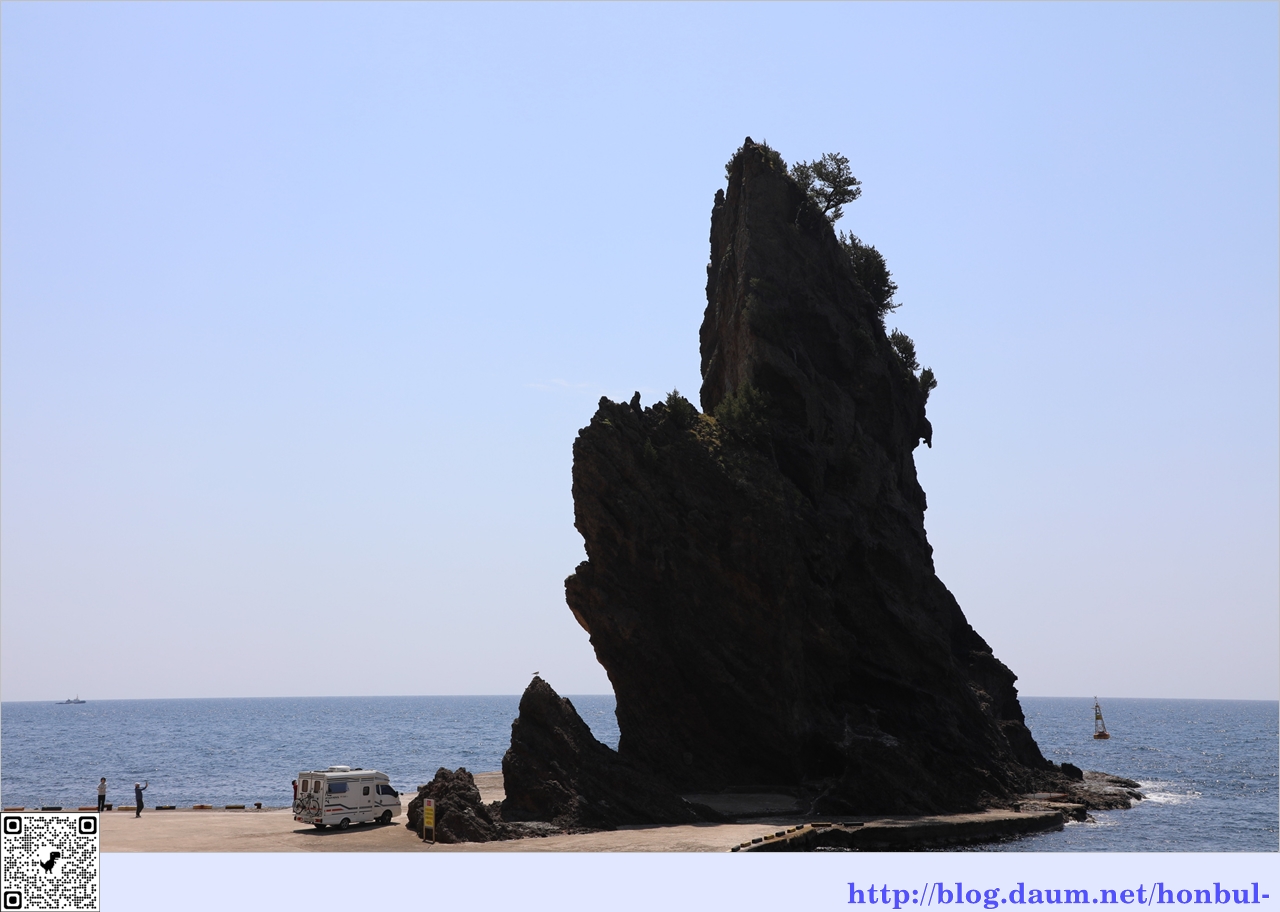 이곳은 바다 쪽으로 돌출된 단단한 암석이 파랑에 의해 주변부만 침식되어 고립된 바위섬, 즉 시스택이다.