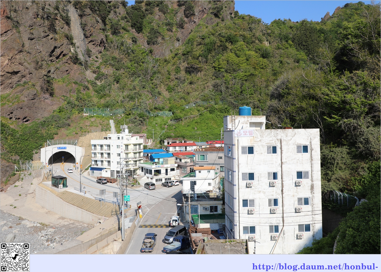 거기에 올 4월 27일에 개통된 통구미터널의 흰색 입구가 포인트를 준다.