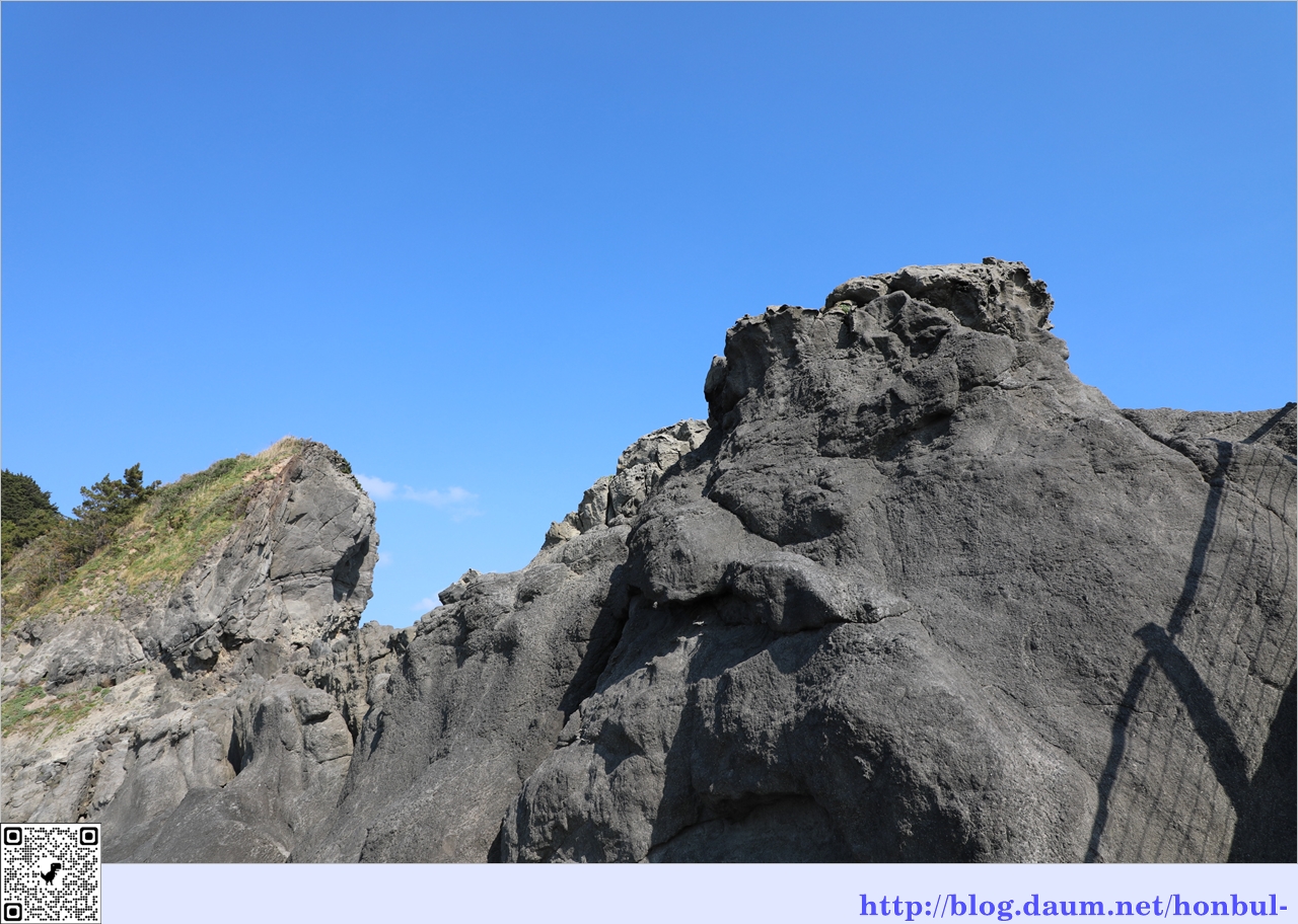 매바위를 돌아서면 해풍에 의해 특이하게 침식된 지형이 발달하여 수려한 해안절경을 자랑한다.