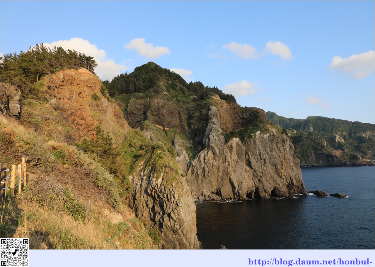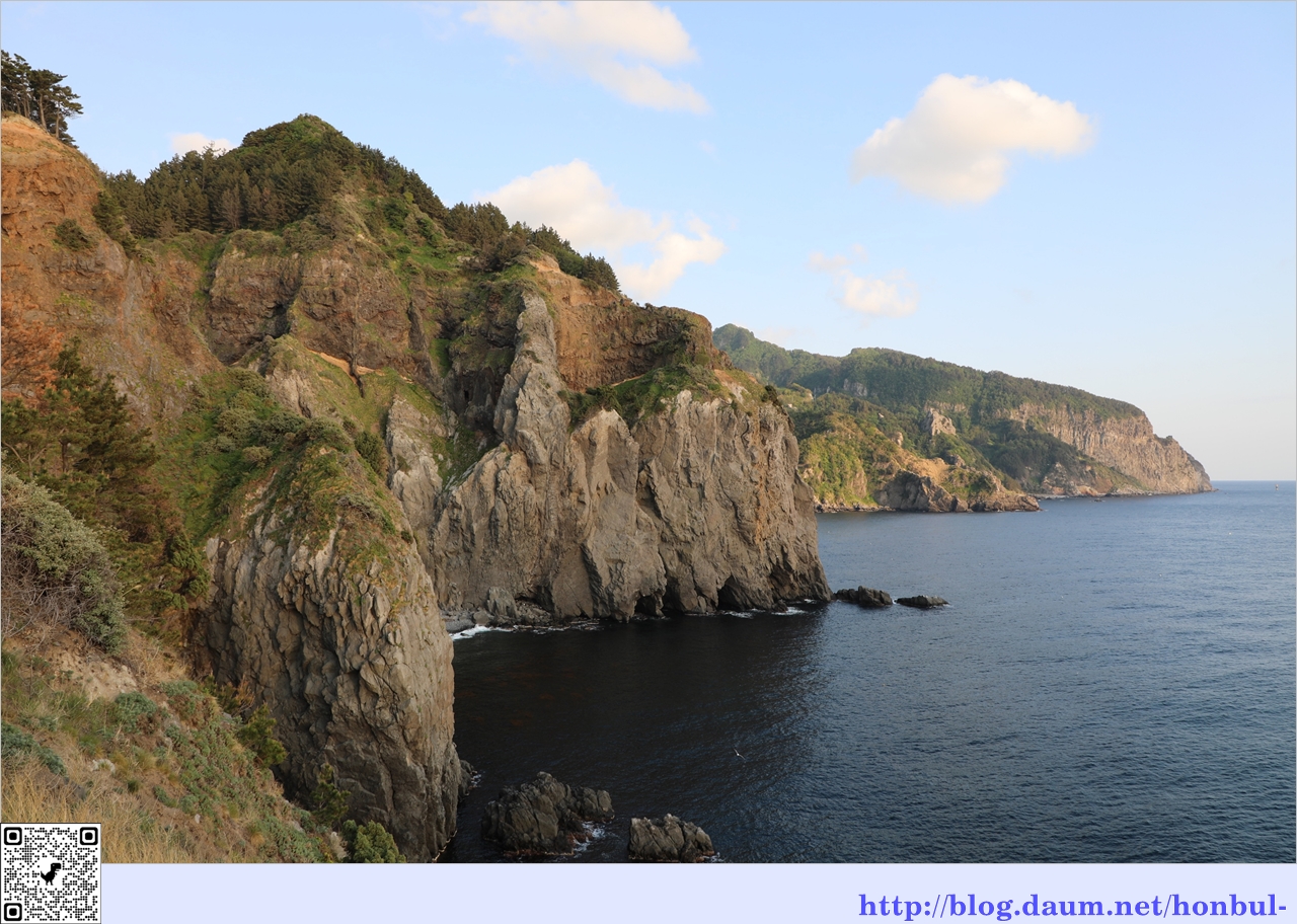 다음 버스를 기다리며 수토역사박물관 뒤로 난 산길을 올라가 학포 방향의 해안 절벽을 본다.