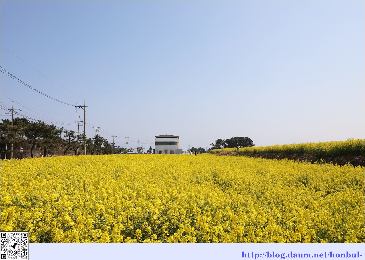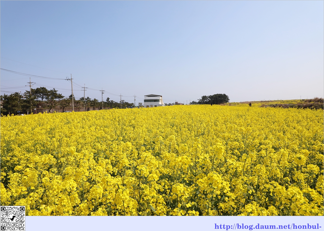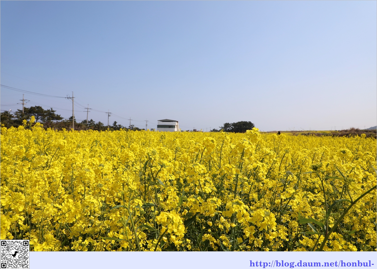 어느 밭에는 화사한 유채꽃이 피어 한결 상쾌한 기분이 든다.