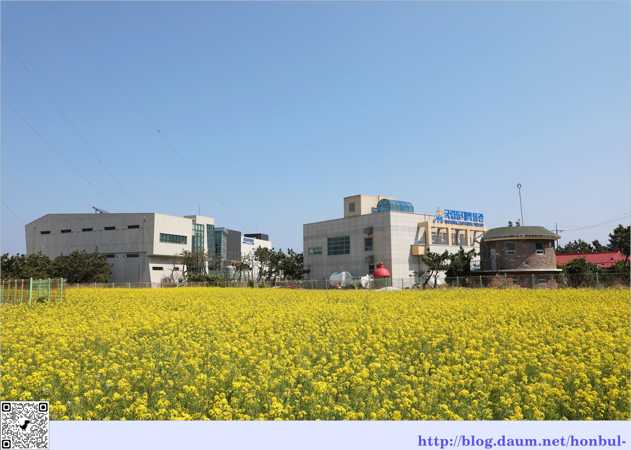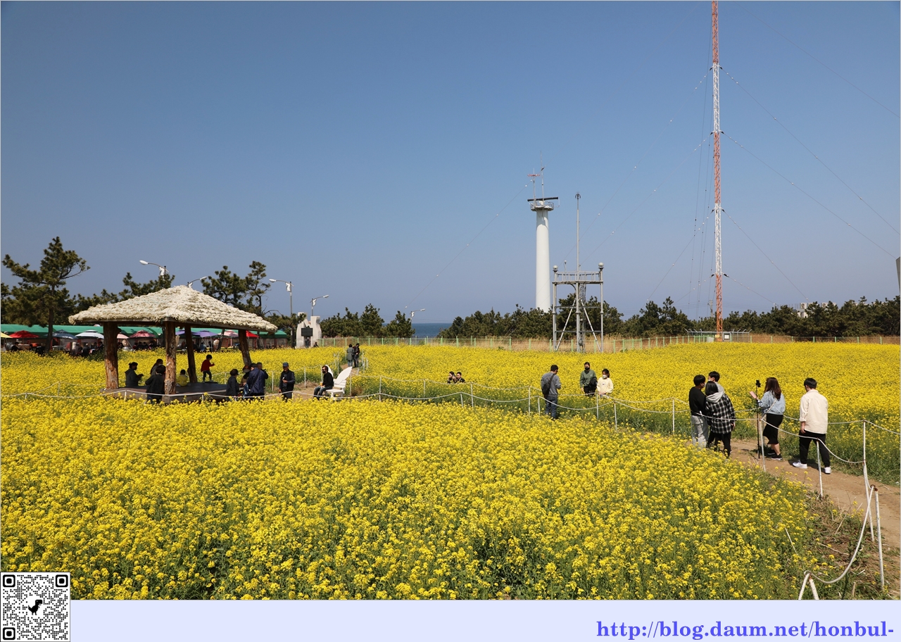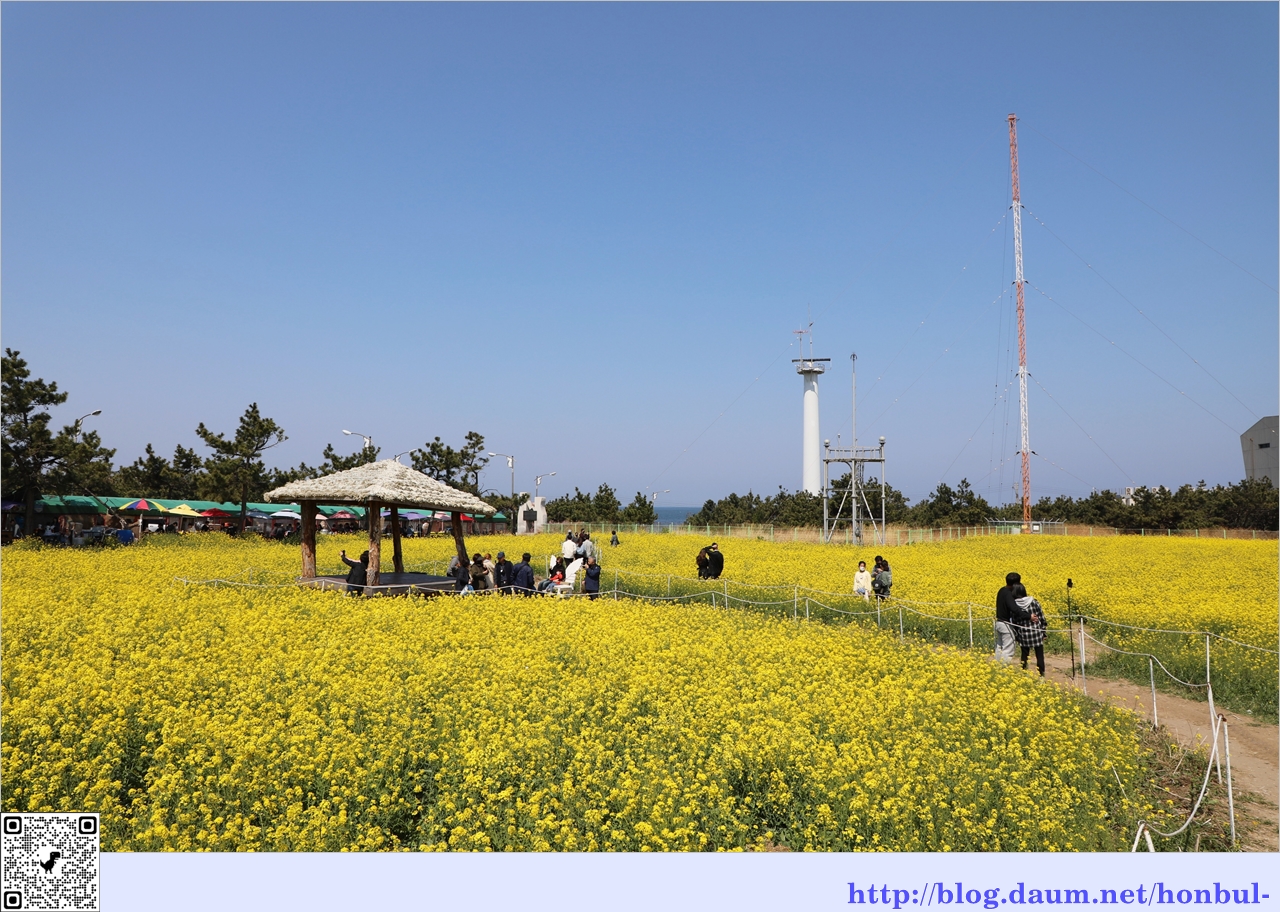호미곶등대 뒤로 유채꽃이 화사하게 펴 관광객을 유혹한다.