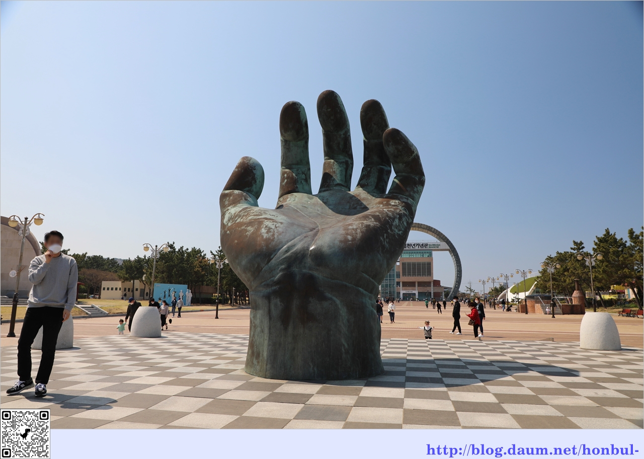 바다로 나와 육지의 손을 마주보는 조형물을 처음으로 만난다.