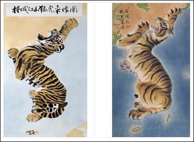 근역강산 맹호기상도의 호랑이 꼬리가 호미곶에 해당한다.
