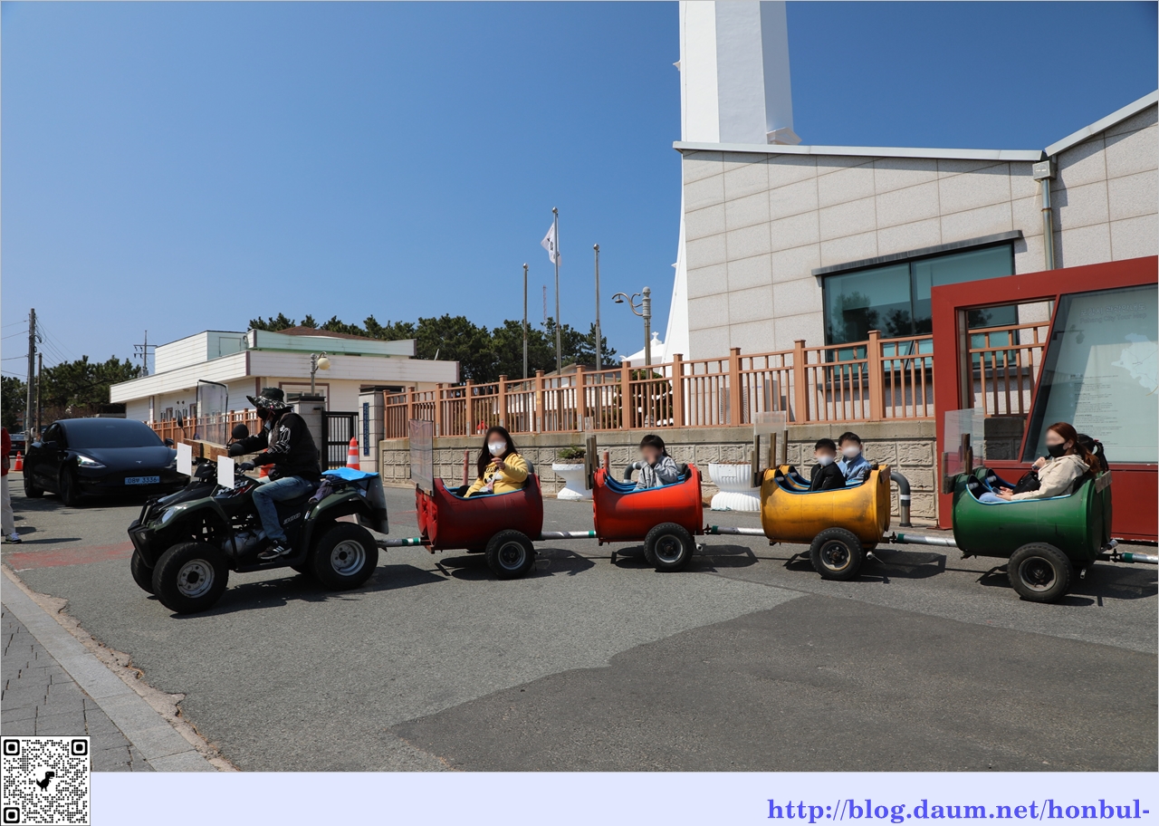 깡통 열차를 즐기는 관광객은 초등학생 꼬마의 동심을 안고 달린다.