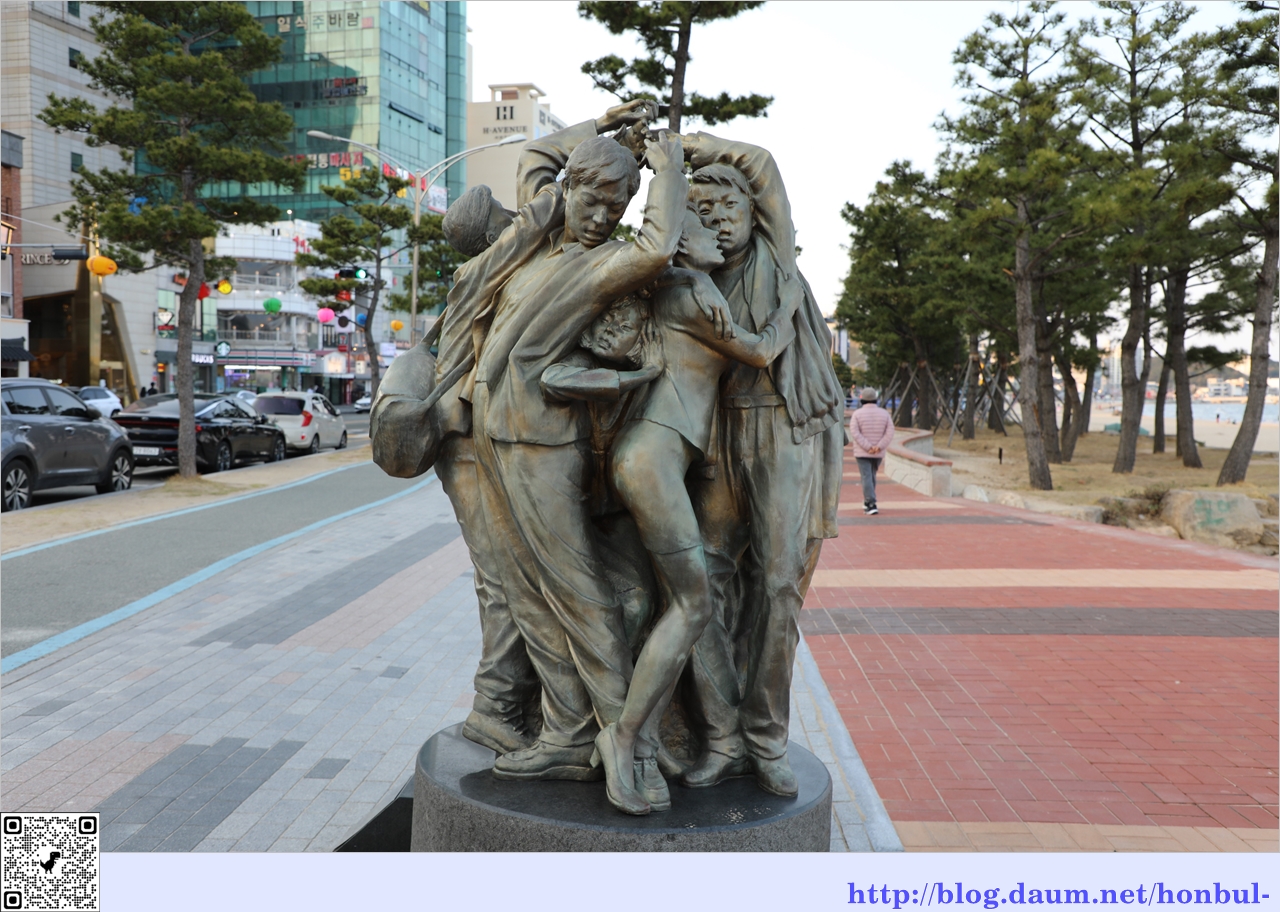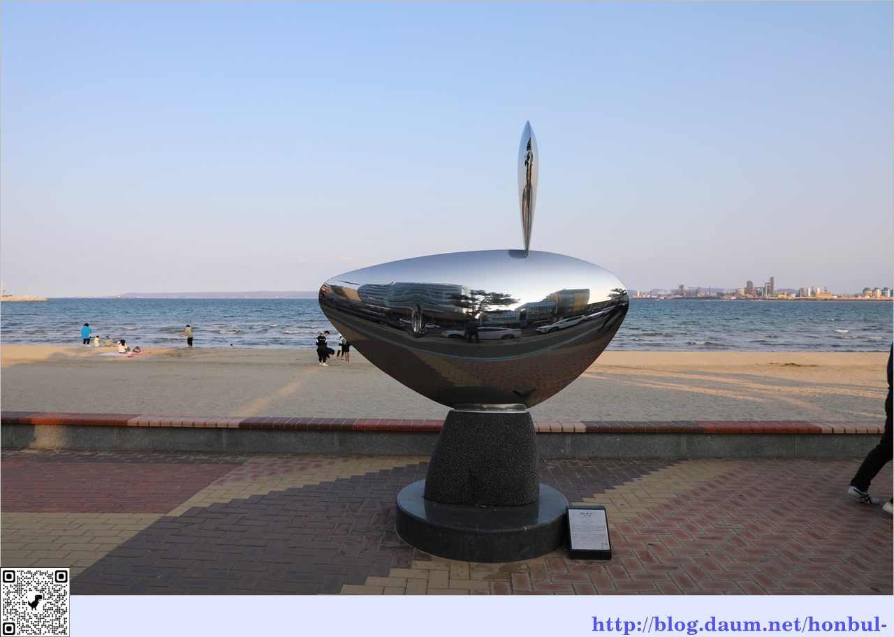 영일대 해수욕장에 도착했을 때 해는 뉘엿뉘엿 서쪽 수평선으로 기울어 빛을 잃어간다.