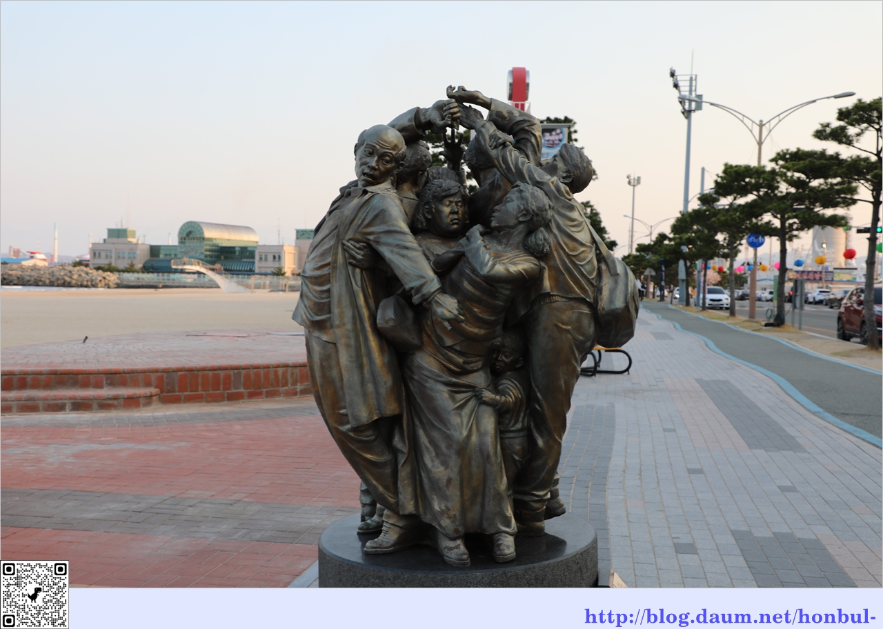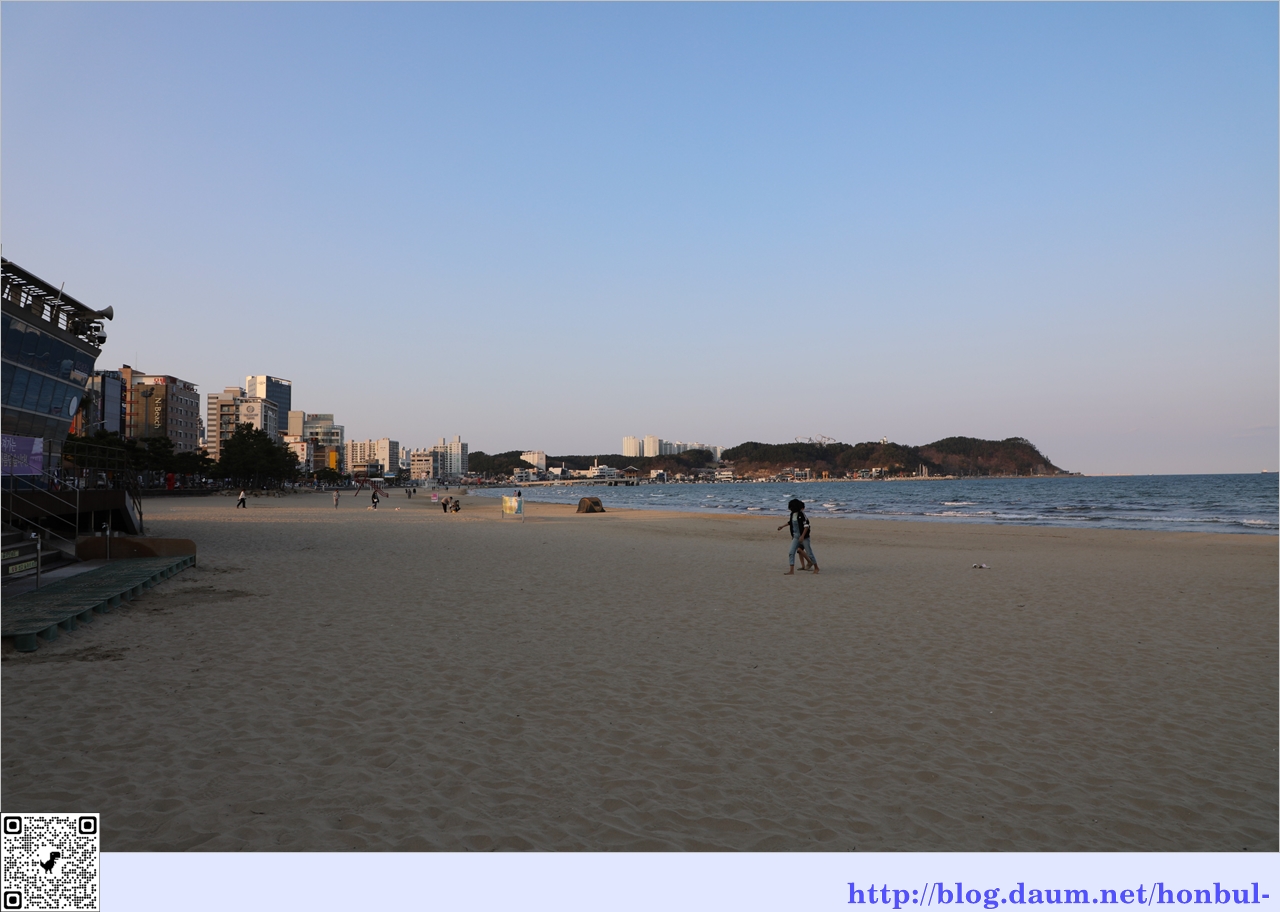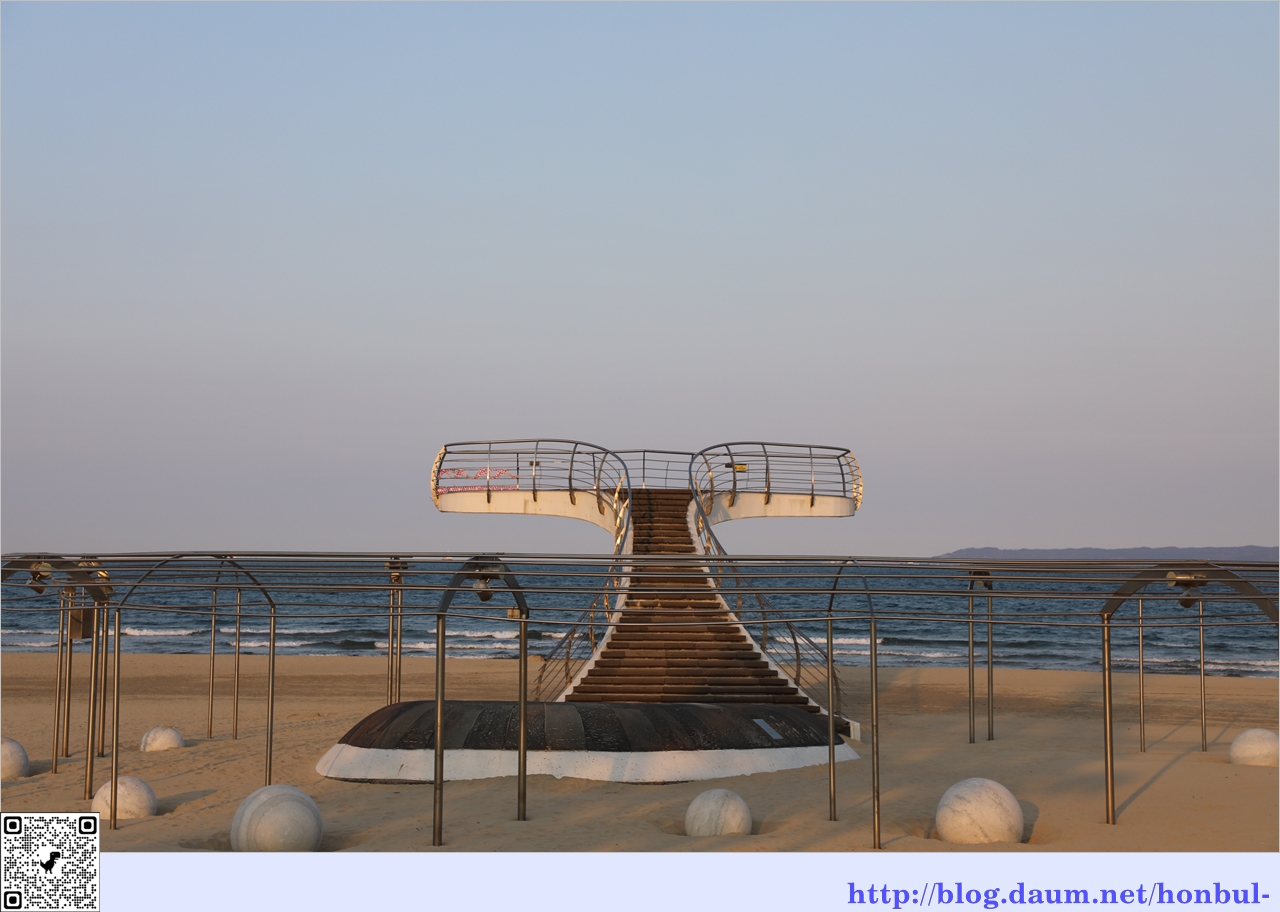 영일대 해수욕장에 도착했을 때 해는 뉘엿뉘엿 서쪽 수평선으로 기울어 빛을 잃어간다.