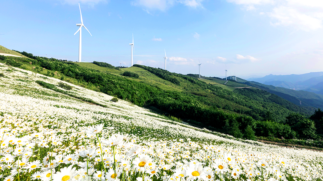 평창군청에서 가져온 사진으로 샤스타데이지가 만발한 6~7월의 풍경이다.
