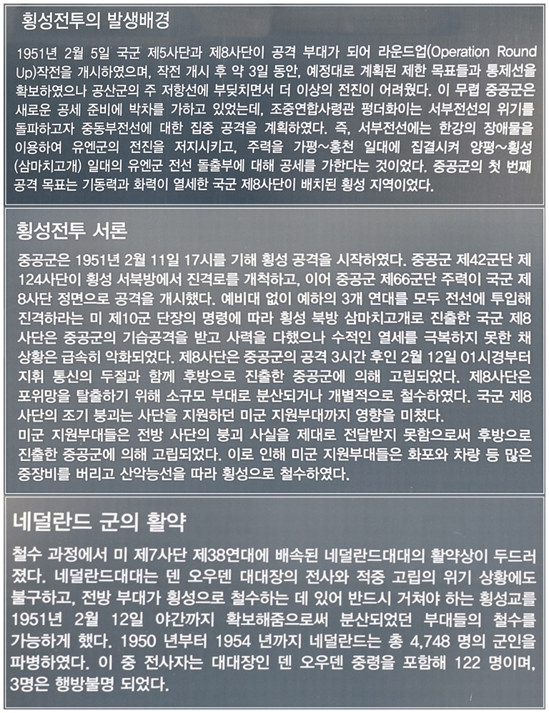 평창 탐방을 끝내고 원주로 돌아갈 때 횡성군 우천면에 있는 네덜란드군 참전기념비에 잠시 들렸다.