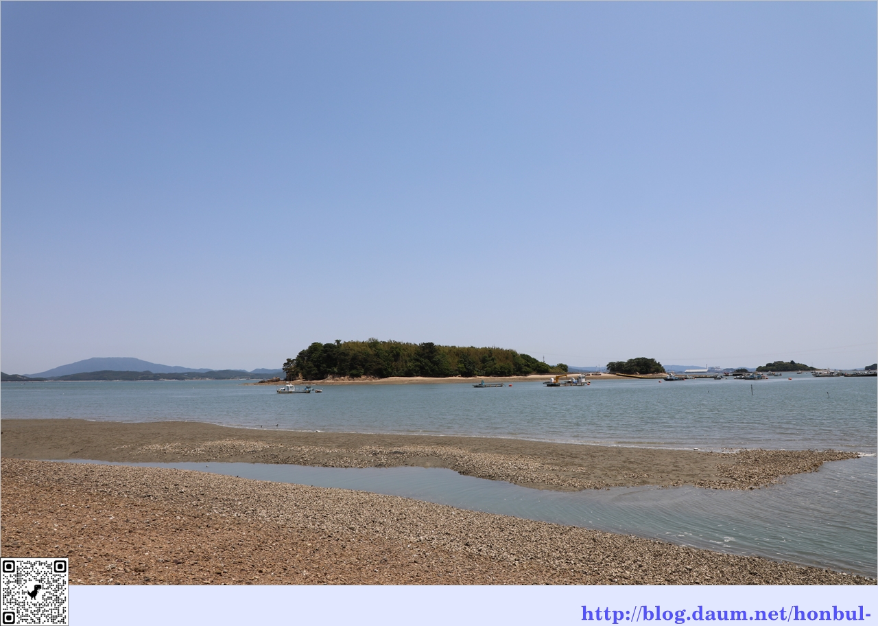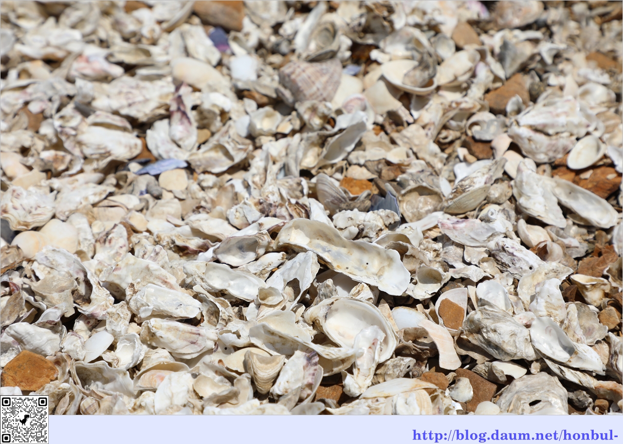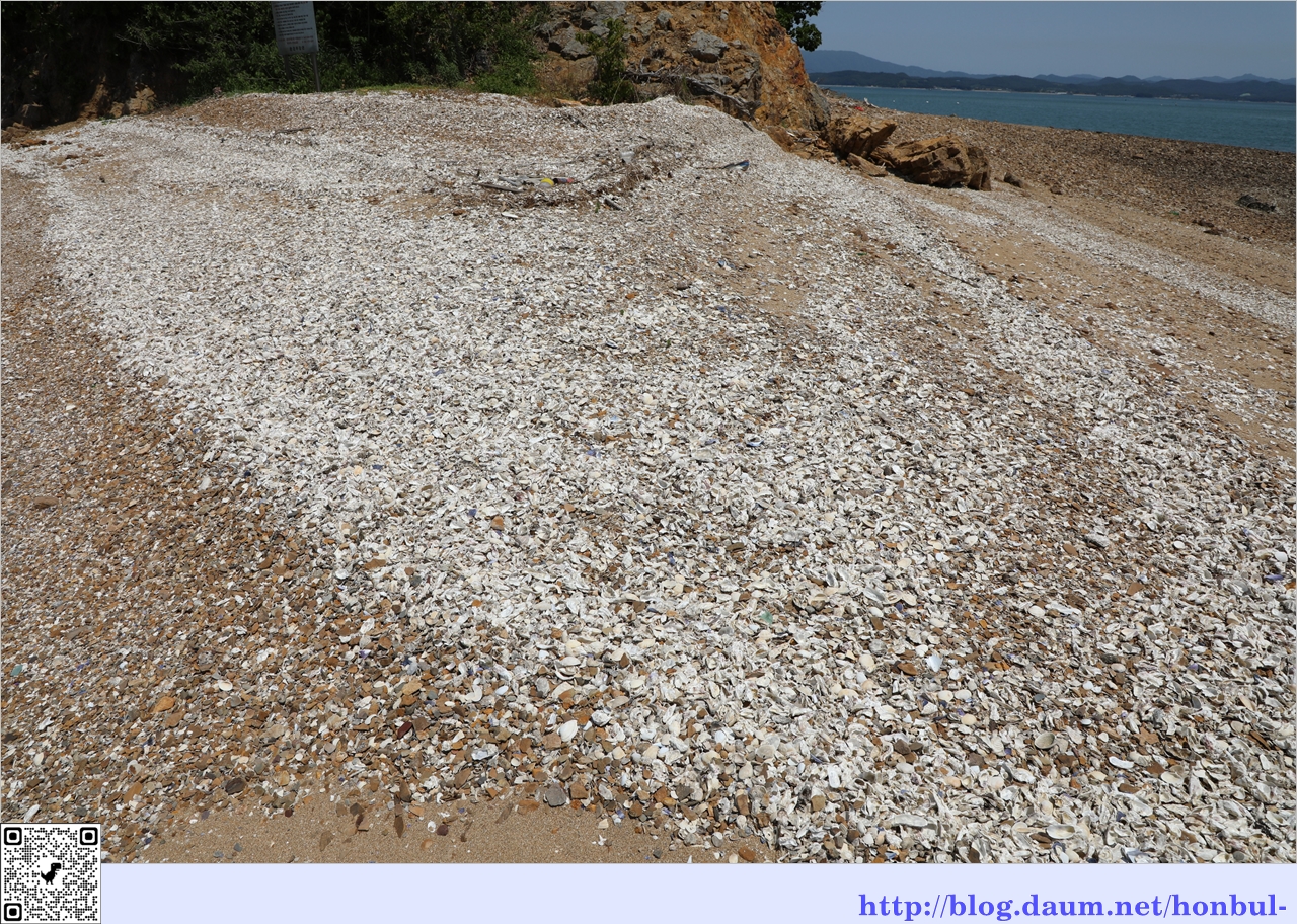 두 개의 섬 중 먼저 만난 큰 섬 앞에 조개껍질이 그득하다.