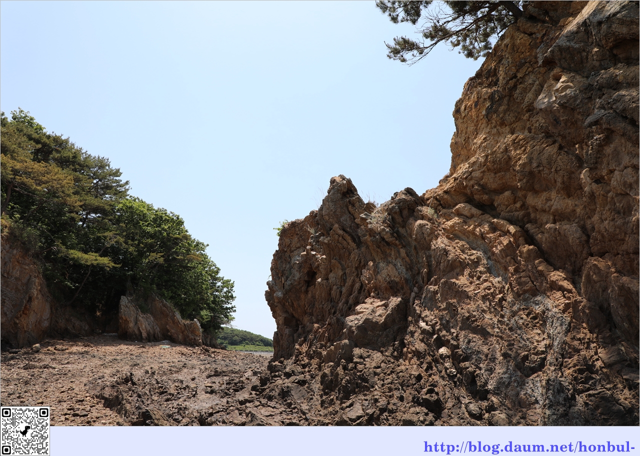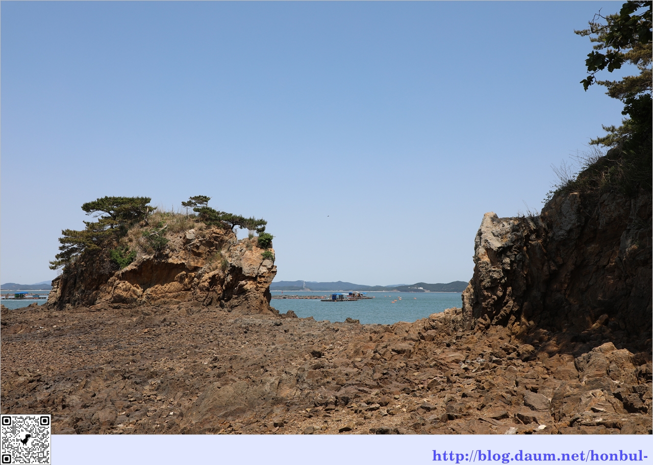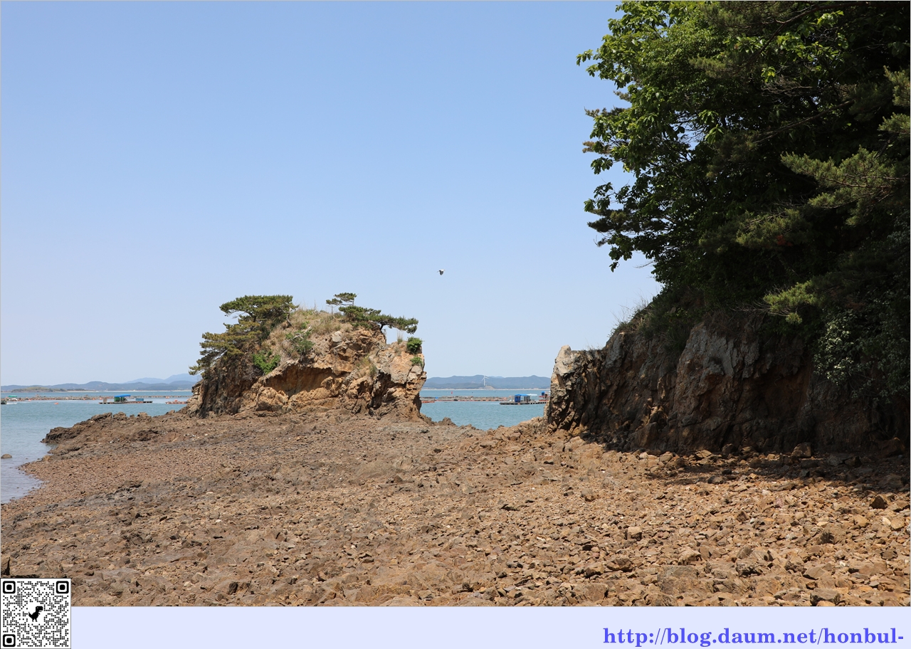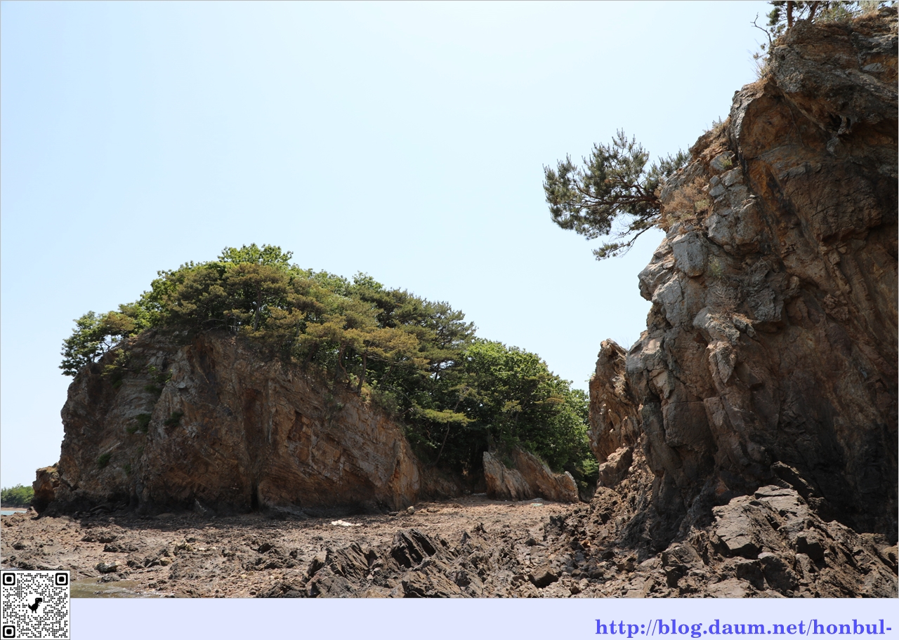 주변을 천천히 돌다 보니 조그만 섬 두 개가 보이는 데 바닷물이 빠져 걸어서 들어갈 수 있다.