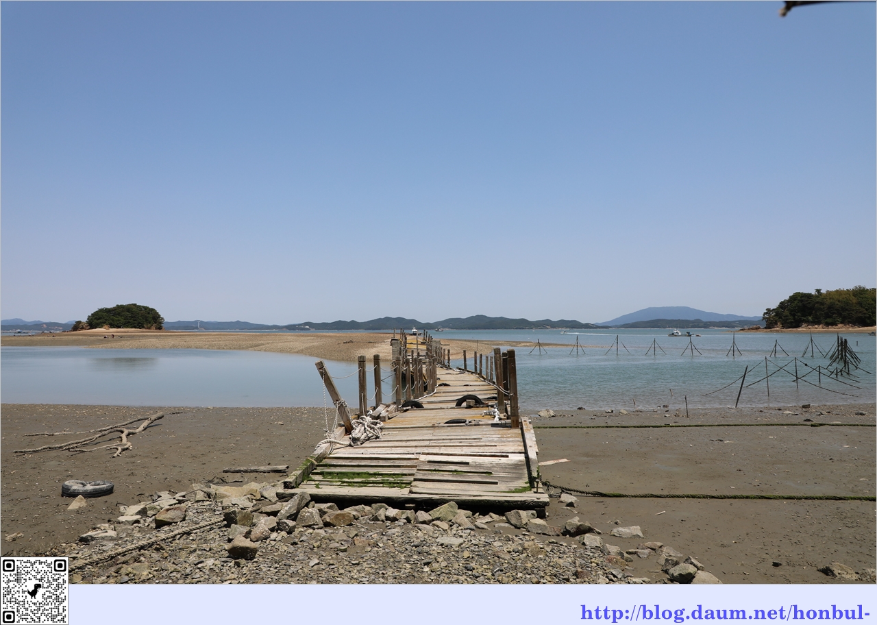 도로에서 갯가로 내려서면 갯벌에 자갈과 흙을 깔아 길을 내고,
