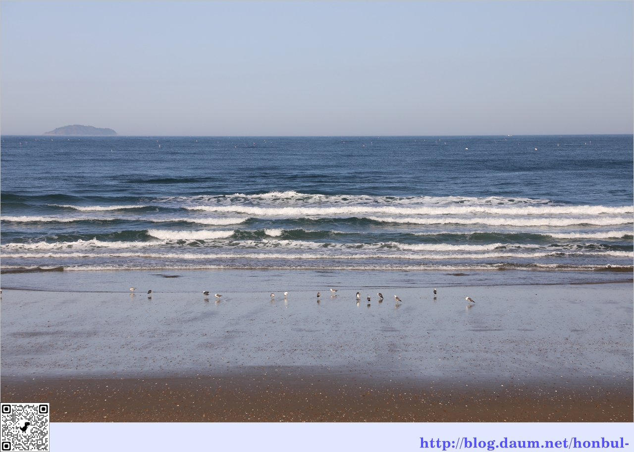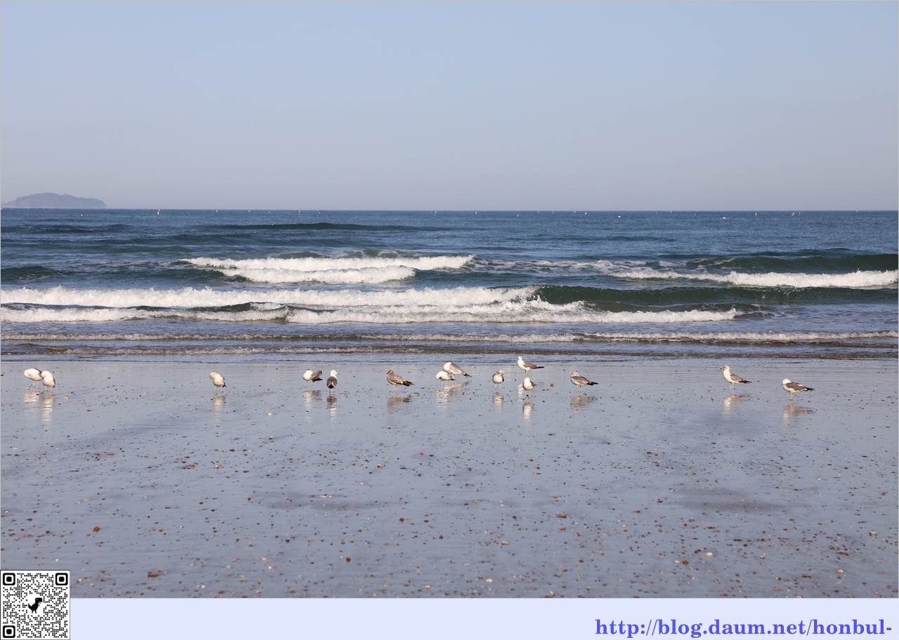 제법 물이 빠진 해변을 갈매기가 먼저 차지한다.