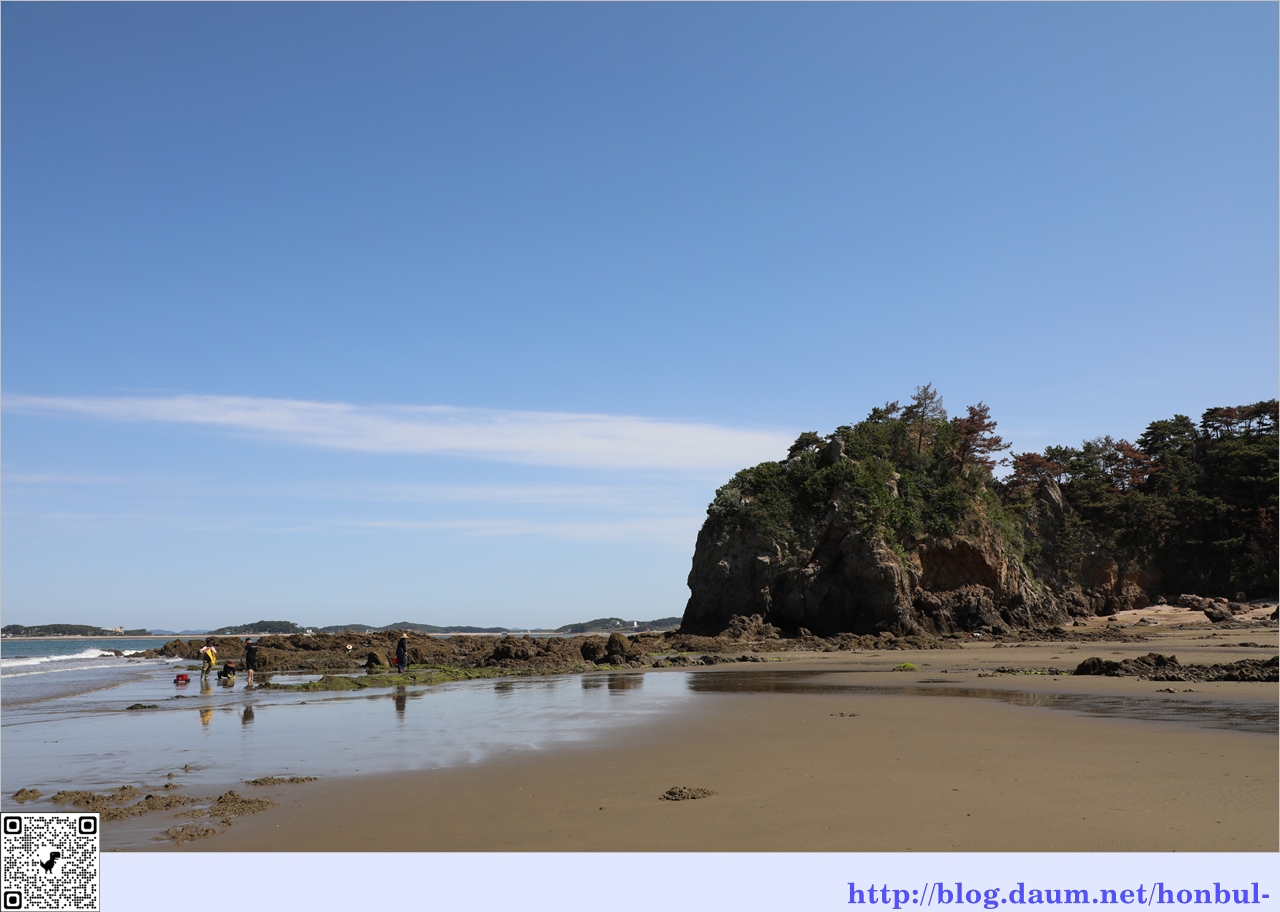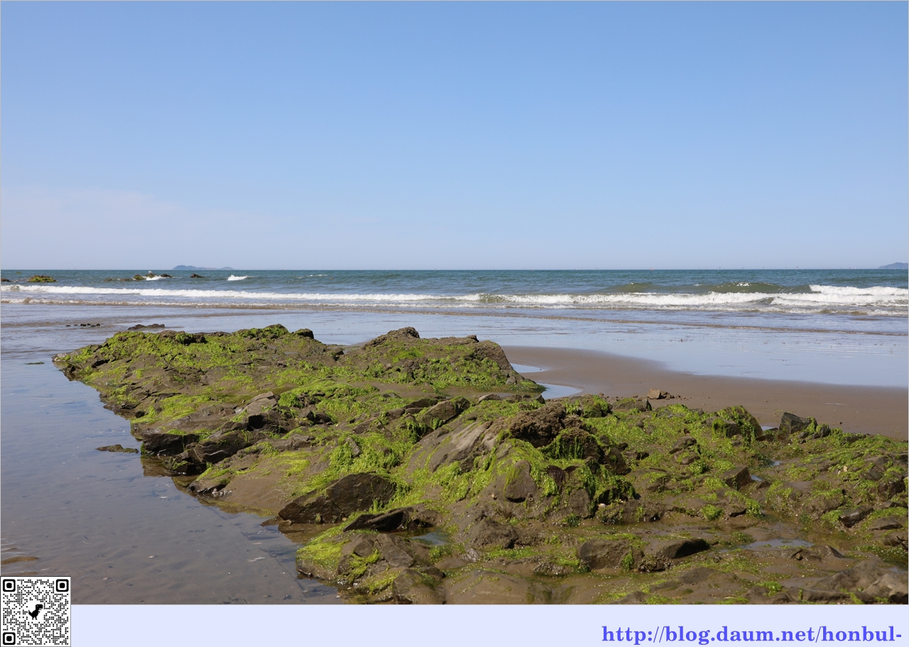 이곳은 모래보다 암반이 많은 특이한 해안이다.